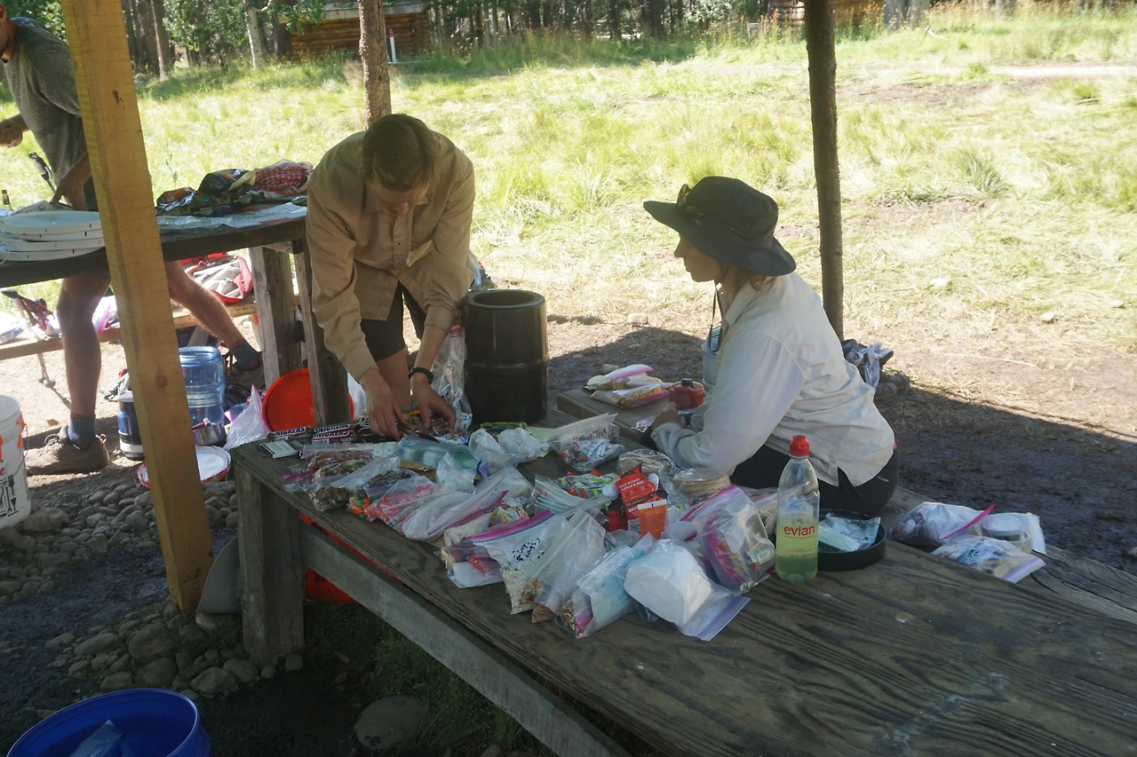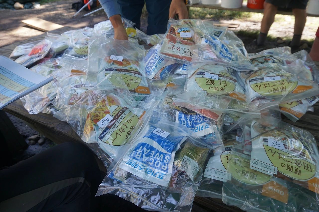 보급품을 찾아 다시 분류해 곰 통에 넣는다. 그간 트레킹 경험으로 필요한 것은 챙기고 불필요한 것은 뺀다.(우) 한국인의 식단과 많은 차이가 있다.(아래)