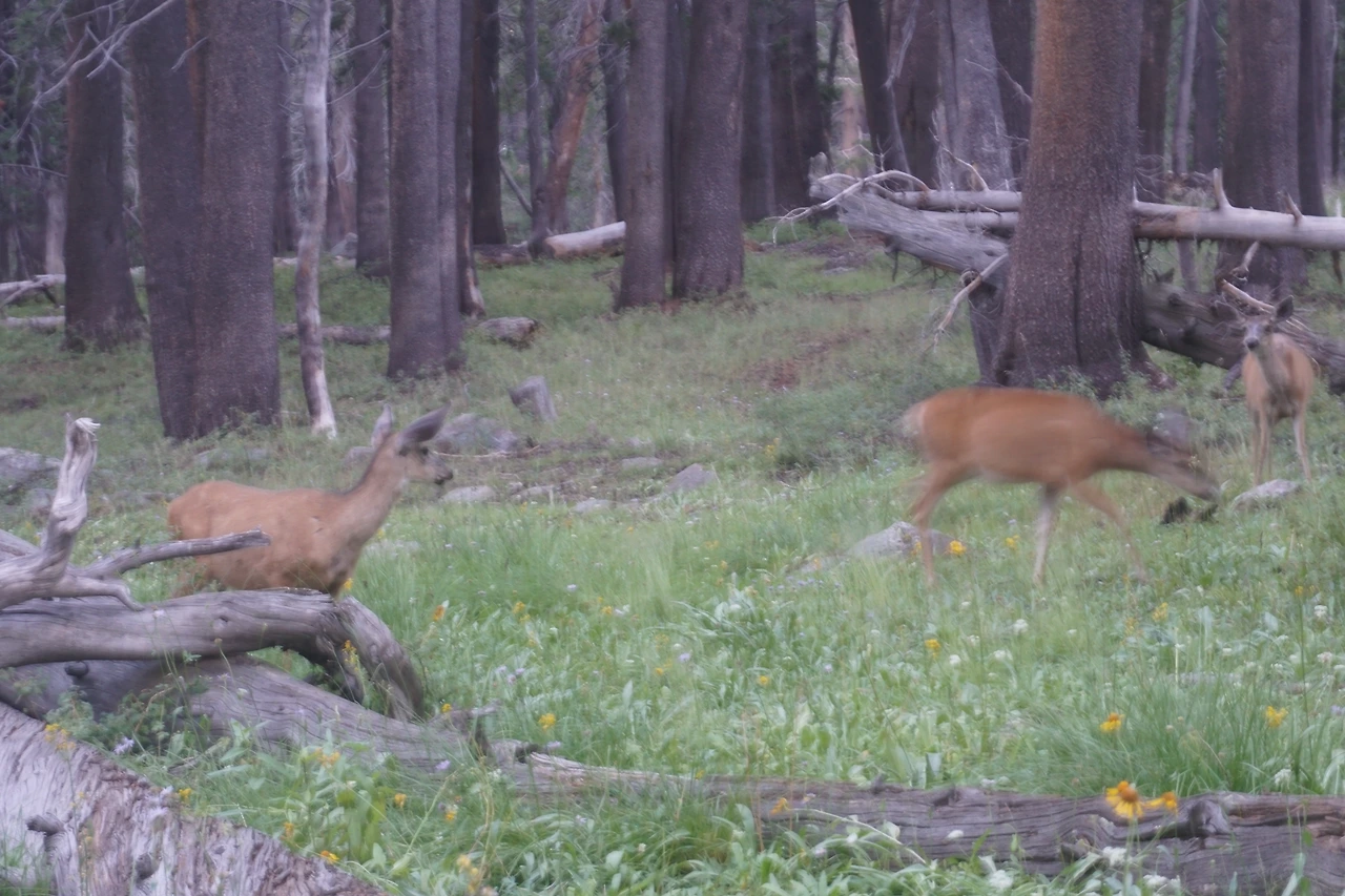 JMT에는 야생이 살아 있다. 아침에 만난 사슴 가족