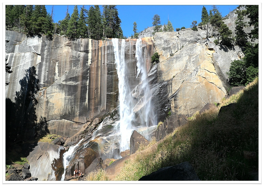 네바다 폭포를 지나 조금 더 내려오면 길은 두 갈래로 갈라지는데 좀 더 계곡길을 따라 내려오면 버넬 폭포를 만나게 된다. 영혼을 적시는 폭포란 이름을 가진 이 폭포는 여인의 하얀 치맛자락 같은 직폭으로 떨어지는 물기둥이 가히 천하절경이다. 폭포 아래 물보라에 일곱 빛깔 무지개가 선명하게 보인다. 어찌나 폭포의 높이가 높던지 주변에는 폭포에서 일으키는 물보라가 분수처럼 날린다. 이 폭포의 물은 흘러서 머세드 강으로 흘러든다.