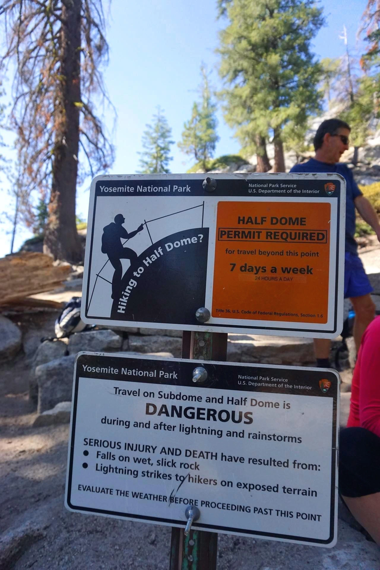 멀리서도 뚜렷이 보이던 하프돔(Half Dome)이 점점 가까워 온다. 갈림길에서 하프돔을 가기 위해서는 오름을 올라야 했다. 건조한 날씨로 폭삭폭삭 먼지를 풍긴다. 하프돔을 오르기 위해서는 퍼밋을 받아야 오를 수 있다. 지금 시간이 당일로 하프돔을 오를 시간이라 가벼운 배낭을 멘 하이커들이 많다. JMT에서 만난 트레커와는 다른 속세의 산꾼을 마주하는 것 같다.