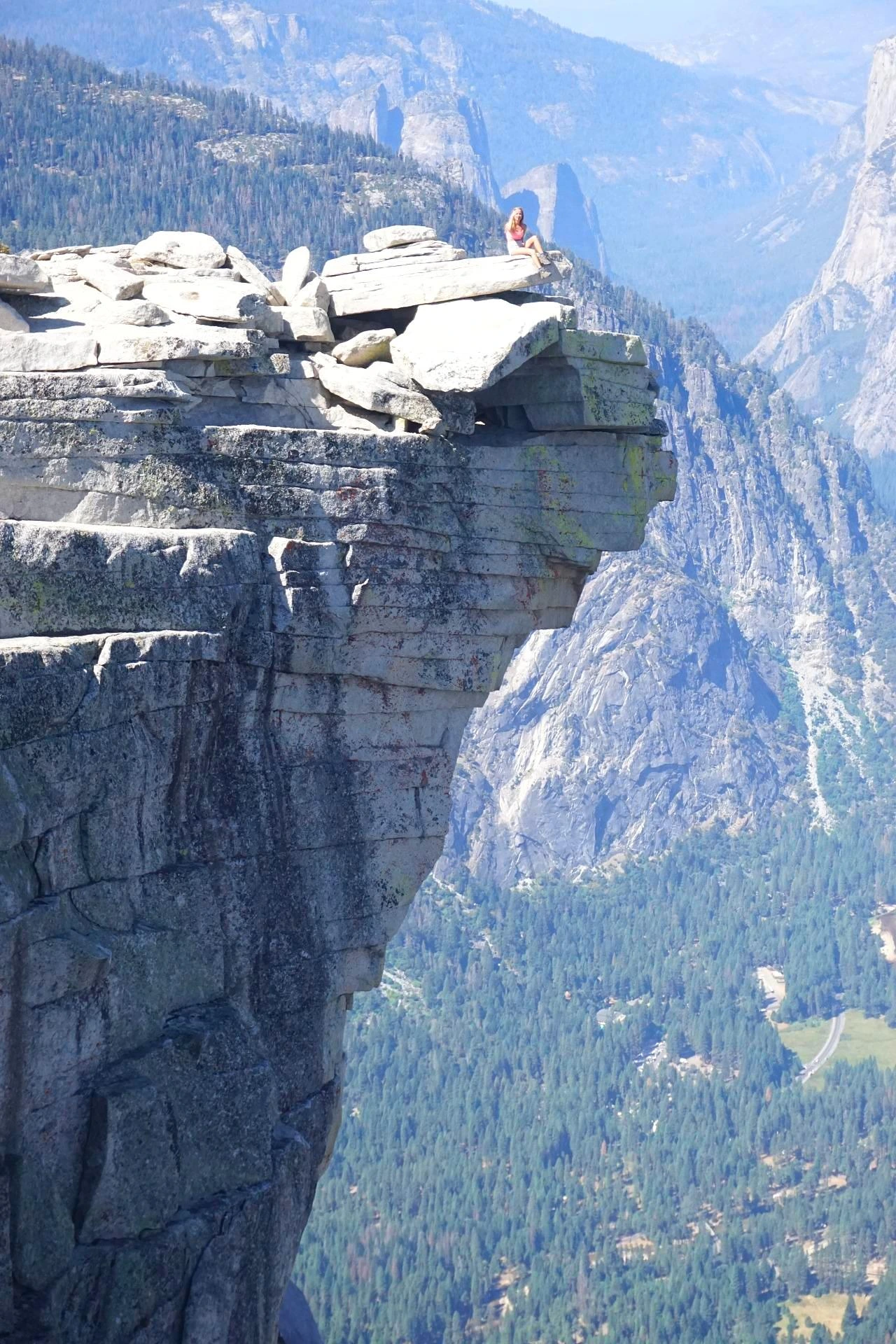 하프돔 정상에 서면 360도로 막힘이 없어 요세미티 계곡 속속들이를 볼 수 있는 훌륭한 전망을 가지고 있다. 가장 멋진 풍경은 사진으로 봐온 다이빙 보드(Diving Board)인데 그 바위에 서면 아래가 수천 길의 낭떠러지로 절로 오금이 져려 온다. 하프돔 위는 굉장히 넓은 바위 광장으로 얼마 전까지는 이곳에서 야영을 할 수 있었는데 지금은 금지되어 있다.