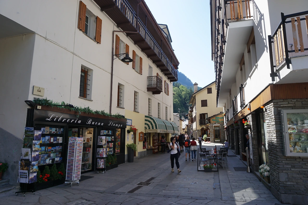 쿠르마이에유로 내려서는 길은 상당히 급경사 길로 지그재그로 내려서면 이탈리아의 샤모니로 불리는 쿠르마이에유다. 알프스풍 건물이 인상적이고 깨끗하다는 느낌이 든다. 여기서 샤모니까지는 버스로 불과 50분 정도의 거리로 알프스 산맥을 프랑스와 이탈리야가 터널을 뚫어 연결시켰다.