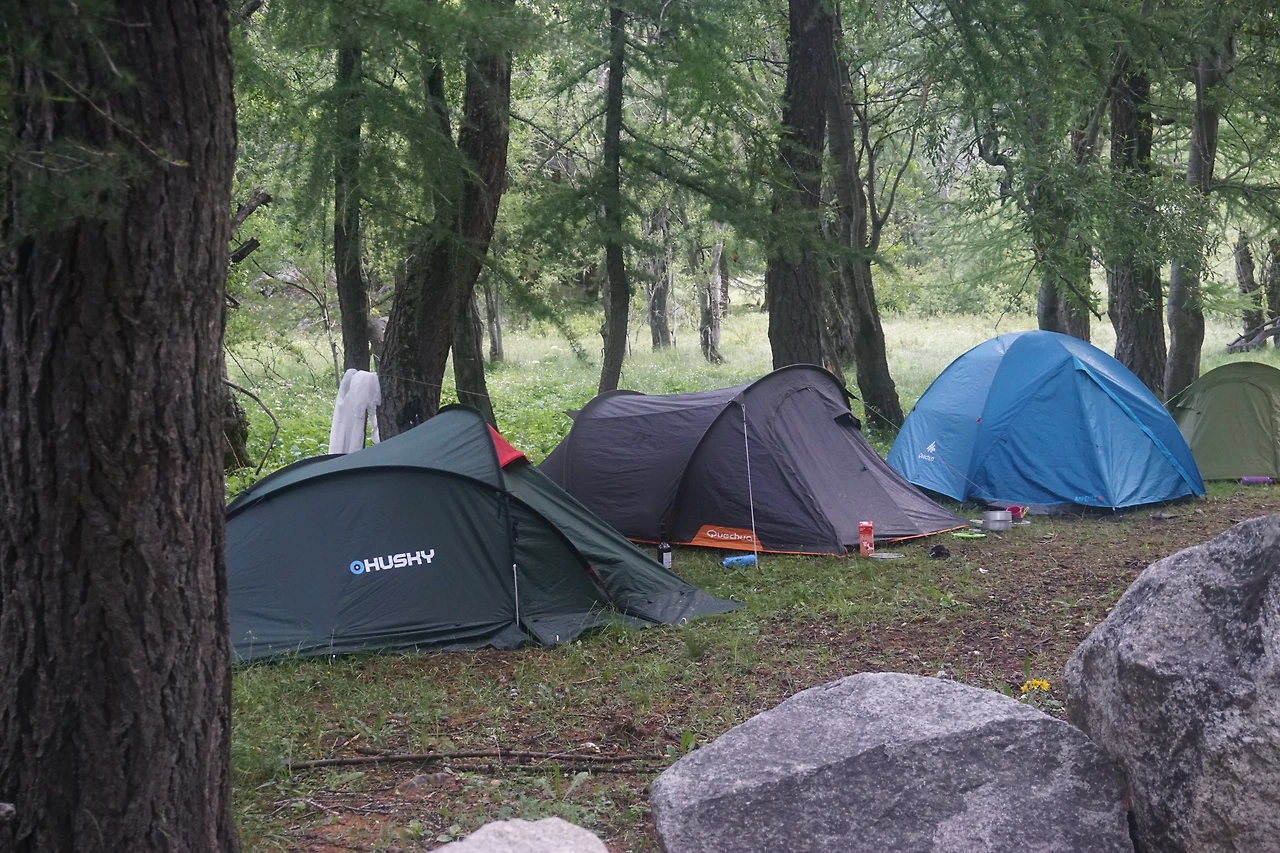 오늘 밤은 엘레나 산장(Rif Elena) 아래 페렛 계곡에 탠트를 쳐야겠다. 계곡에 있는 '샬레 페렛'은 숙박이 되고 식당도 있다. 쿠르마에유에서 이곳까지 버스도 운행되는 곳이다. 샬레에서 계곡을 거슬러 올라 폭포 아래 숲 속에 탠트를 쳤다. 건너편에는 오늘 트레킹을 끝내고 돌아가는 트레커들의 차량이 주차해 있다. 건너편 숲에도 트레커들의 탠트가 여러 동 보인다. 이 부근이 탠트 치기에는 명당자리이다.