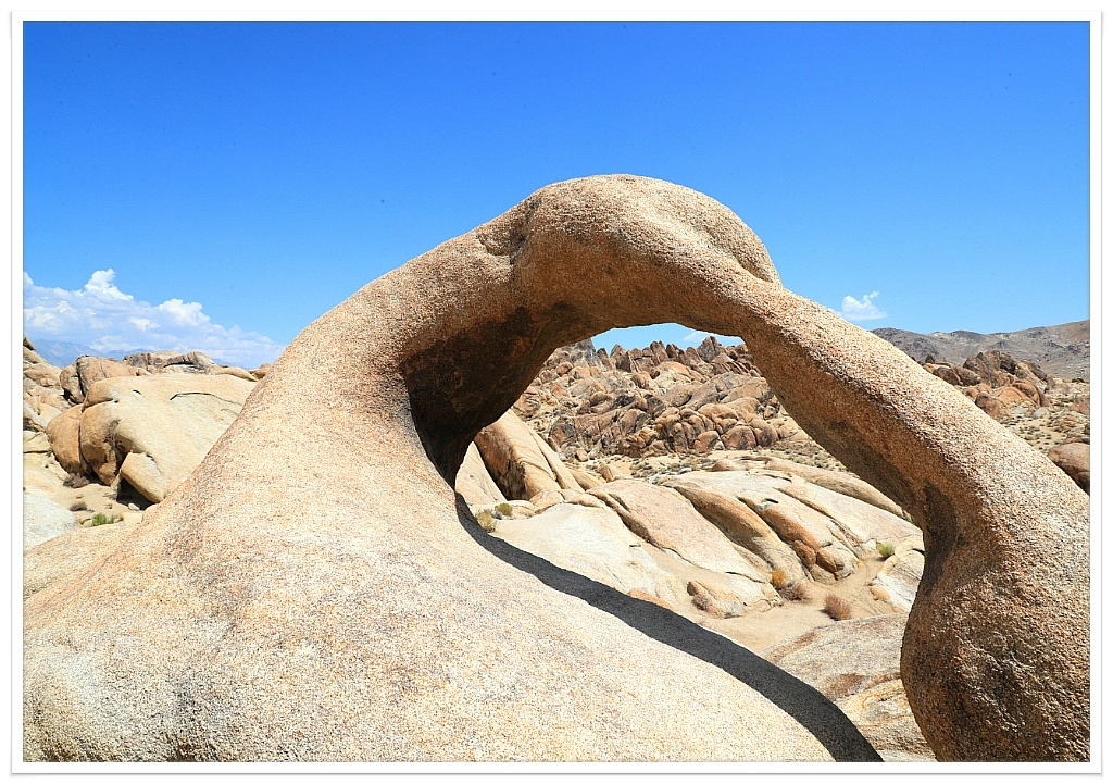 점심시간까지 여유가 있어 부근에 있는 'Arch Loop Trail'을 다녀오기로 했다. 멀리서 보면 염소가 똥을 싸 놓은듯한 여기저기 흩어져 있는 돌무더기와 소가 똥을 싸 놓은듯한 군데군데 사막의 풀들은 황량함을 느끼게 한다. 차문을 열면 훅하는 열기를 느끼며 사막의 언저리에 있는 아치 루프를 찾아 나서는데 사막의 풀포기는 살아 남기 위해 거칠고 질긴 게 모진 강한 생명력을 이어가고 있는 게 대단하다.