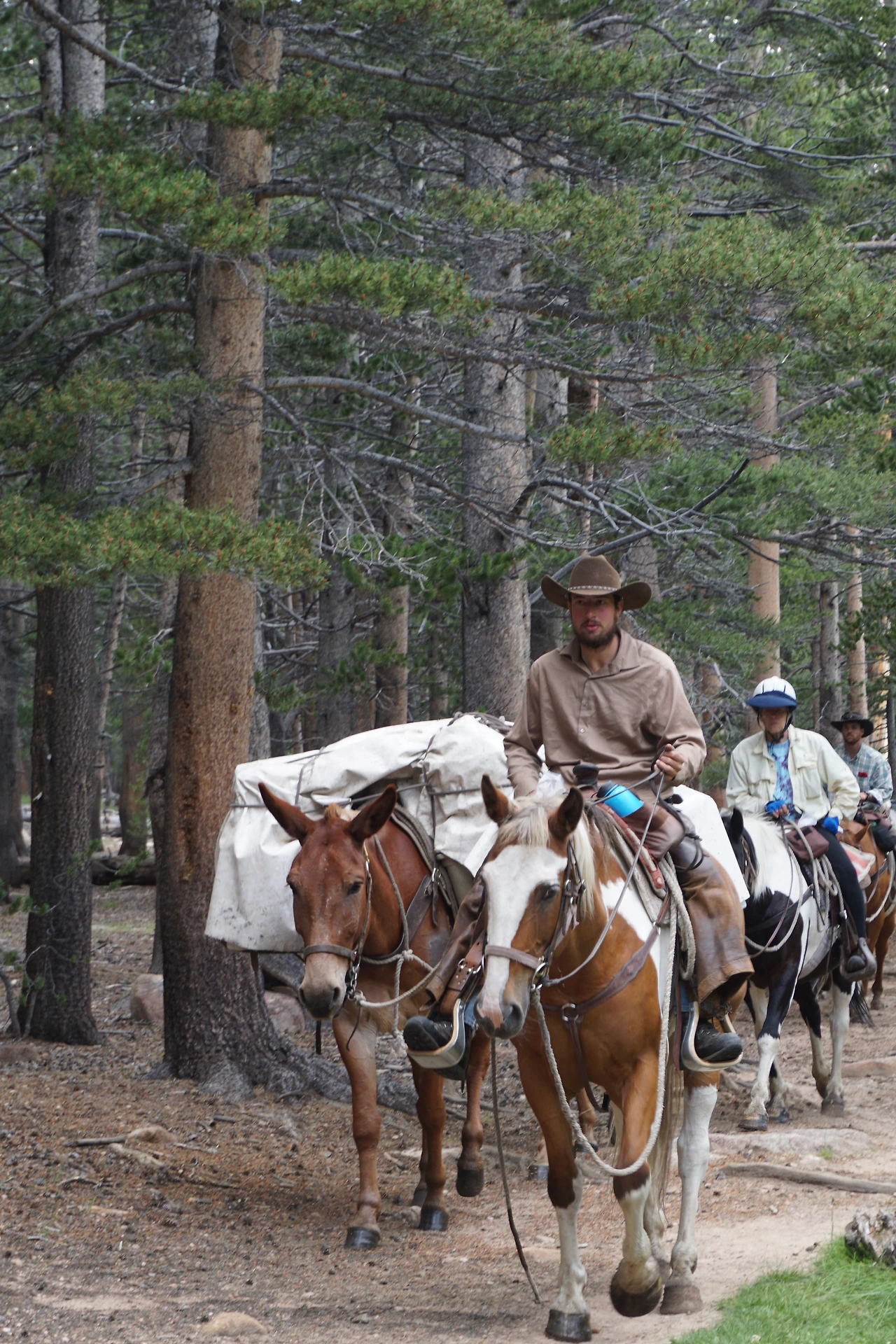 개울가에 쉬고 있는데 한 무리의 말들이 내려온다. JMT의 물자 수송은 오직 말에만 의존한다. 바퀴가 달린 것은 길을 갈 수가 없는 산길이다. 트레커의 보급품을 실어주고 내려오는 말들이다. 제일 앞에 말을 모는 말몰이는 마치 서부시대 카우보이가 나타난 것처럼 카우보이 모자를 쓰고 능숙하게 말을 몰고 가면 그 뒤를 말들이 따라 움직인다. 맨 후미에도 말몰이가 말을 타고 지나간다. 마치 서부시대로 돌아 가는듯한 느낌이다.