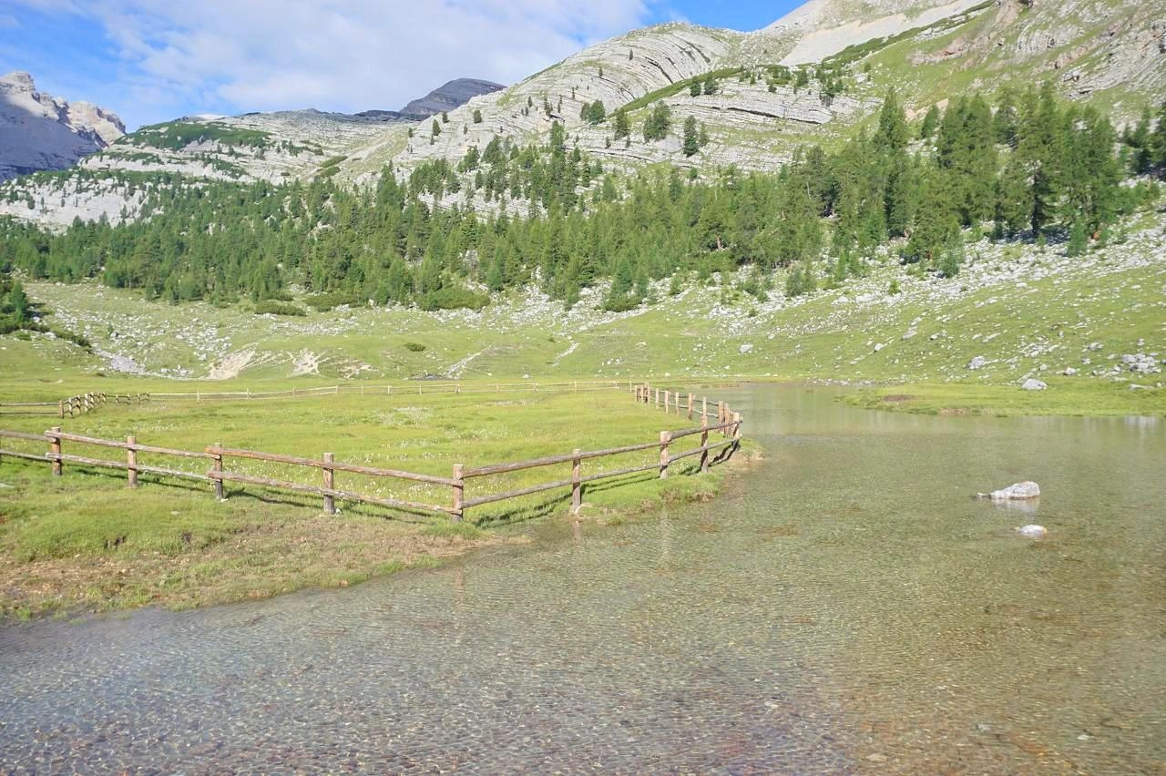 내려오는 길은 20번 길로 스코토니 산장 방향으로 길을 잡았다. 거대한 바위 군인 병풍처럼 둘러싸인 치매 스코토니는 거벽에 가까이 다가 갈수록 마치 극장에서 아이맥스 영화를 보는 느낌이다. 그 거벽을 따라 라가주오이 호수까지 이어진다. 2,000m가 넘는 산중에 호수라니 놀라운 풍경이다. 이곳이 알타비아 1코스로 연결되는 길이다.