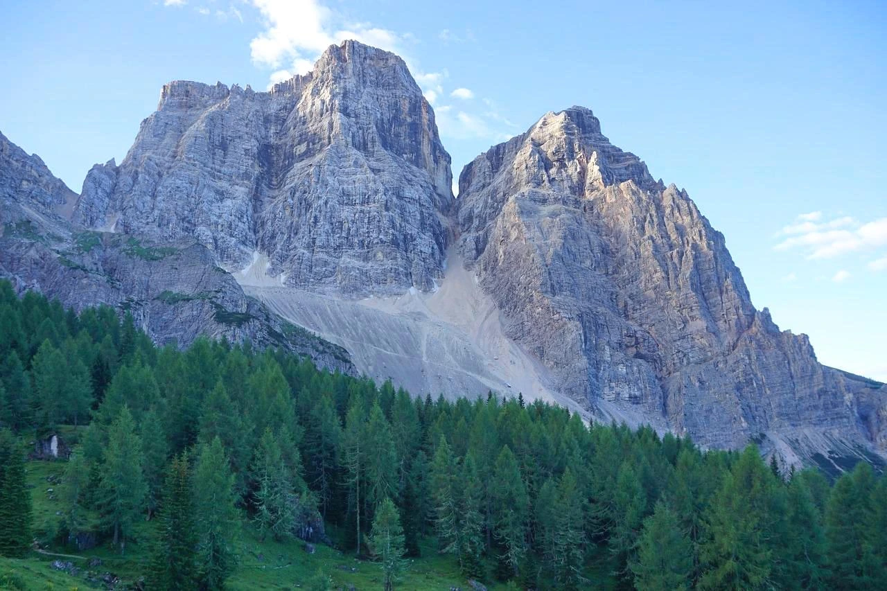 피우메 산장의 아침은 젖소들의 목에 건 워낭소리로 시작한다. 산장 뷔페식을 기다리면서 주변을 돌아보았다. 앞으로 펠모 봉이 백운석의 흰 자태로 우뚝 솟아 뽐내고 있다. 평화롭다는 말은 이런 풍경에 쓰라고 만든 단어가 아닌가 생각되는 아침이다.