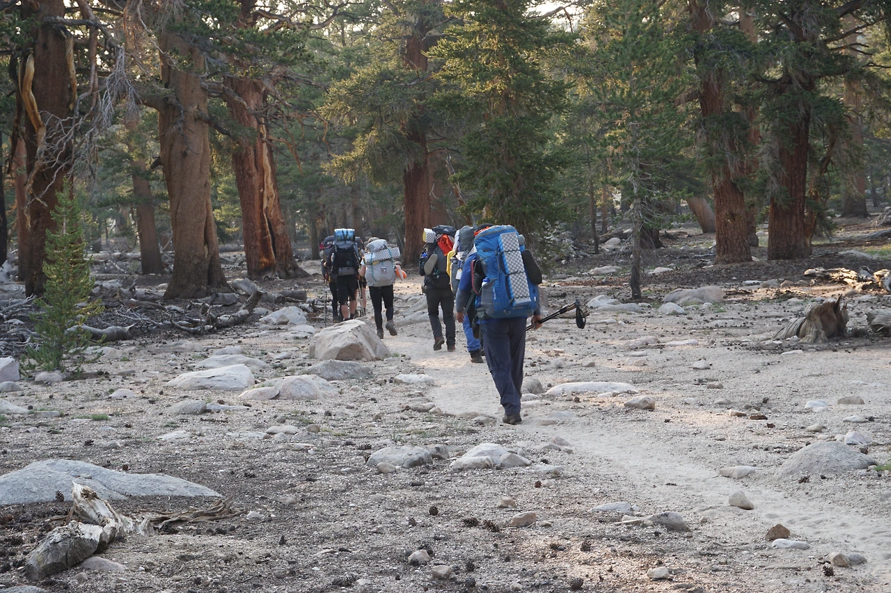 오늘부터 본격적인 존 뮤어 트레일이 시작되는 날이다. 7시 출발이라 5시에 일어나 배낭을 꾸렸다. 아직은 깜깜한 어두움 속에 탠트를 걷니 결로현상으로 생긴 물이 주르르 흐르는 탠트를 둘둘 말아 배낭에 밀어 넣었다. 영하에 가까운 쌀쌀한 기온에 패딩에 털모자를 쓰고 장갑까지 끼고 짐 정리를 했더니 금세 장갑이 축축이 젖는다.