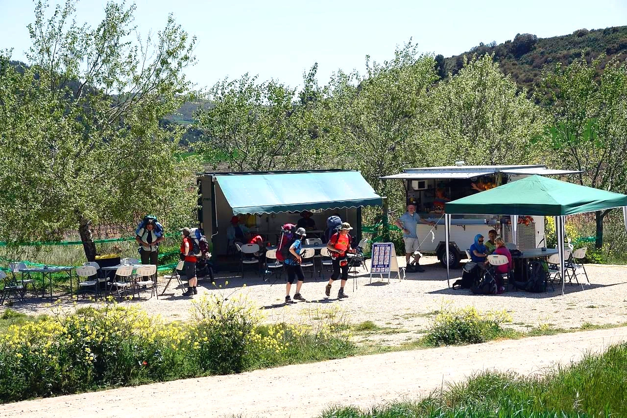 순례길에는 이런 긴 거리에 마을이 없으면 이동 푸드트럭이 있다. 여기도 역시나 널찍한 공터 옆에 있다. 트럭이 있고 그늘막도 쳐져 있고 음료와 간식거리를 팔고 있다. 길 위의 작은 카페에서 쉬어갈 참으로 빈 의자에 앉아 비야 마요르 데 몬하르딘에서 산 맥주를 마시고 있으니 주인장이 물건을 사 먹지 않으면 자리에 앉을 수 없다고 한다. 인심이 좀 사나운 곳이다. 커피 2잔을 주문하고 쉬면서 물집 잡힌 그 아가씨 발을 치료해 주었는데 손양이라고 혼자 카미노 길을 걷고 있다고 하였다.
