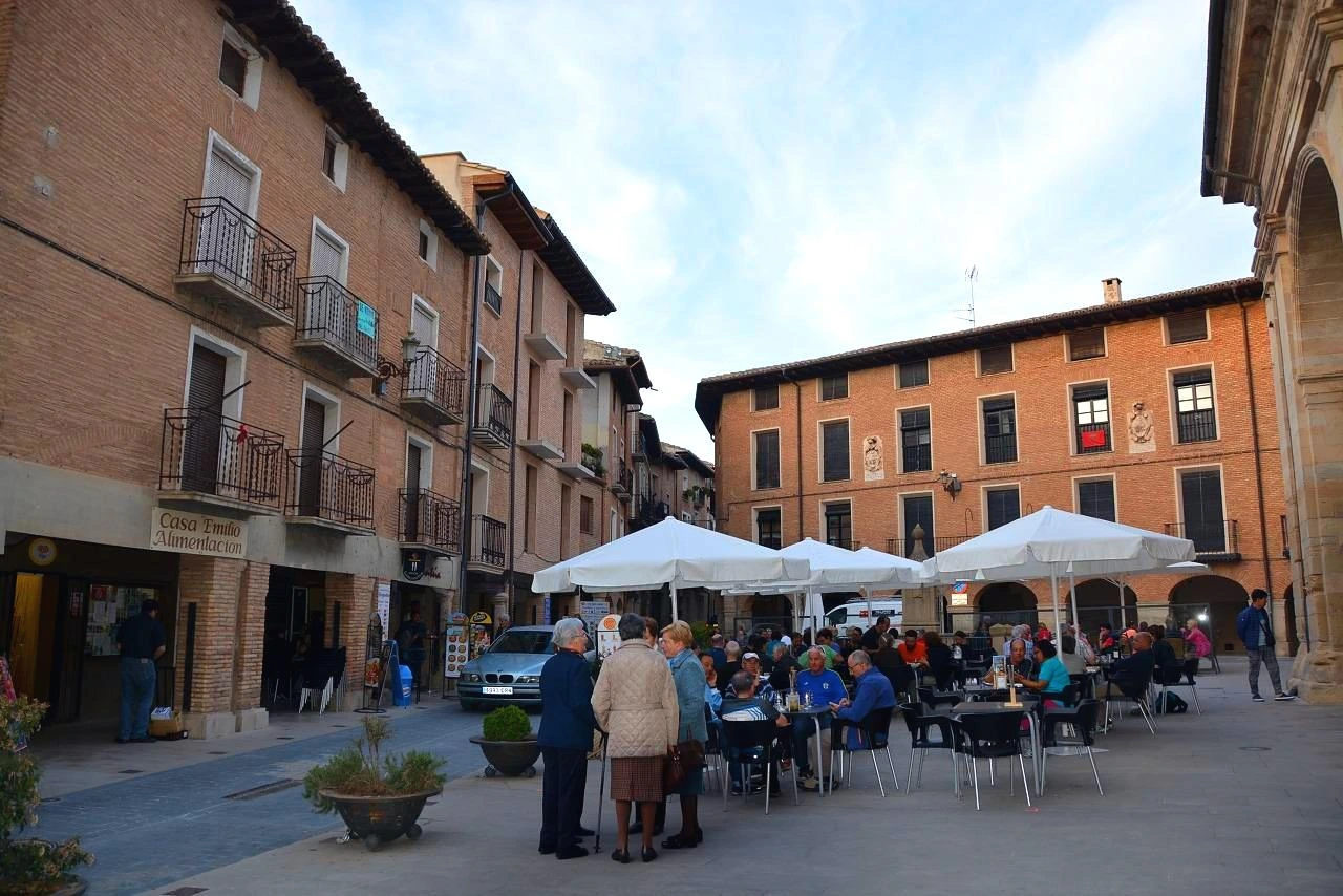 로스 아르꼬스의 산타 마리아 광장의 순례자와 마을 사람들