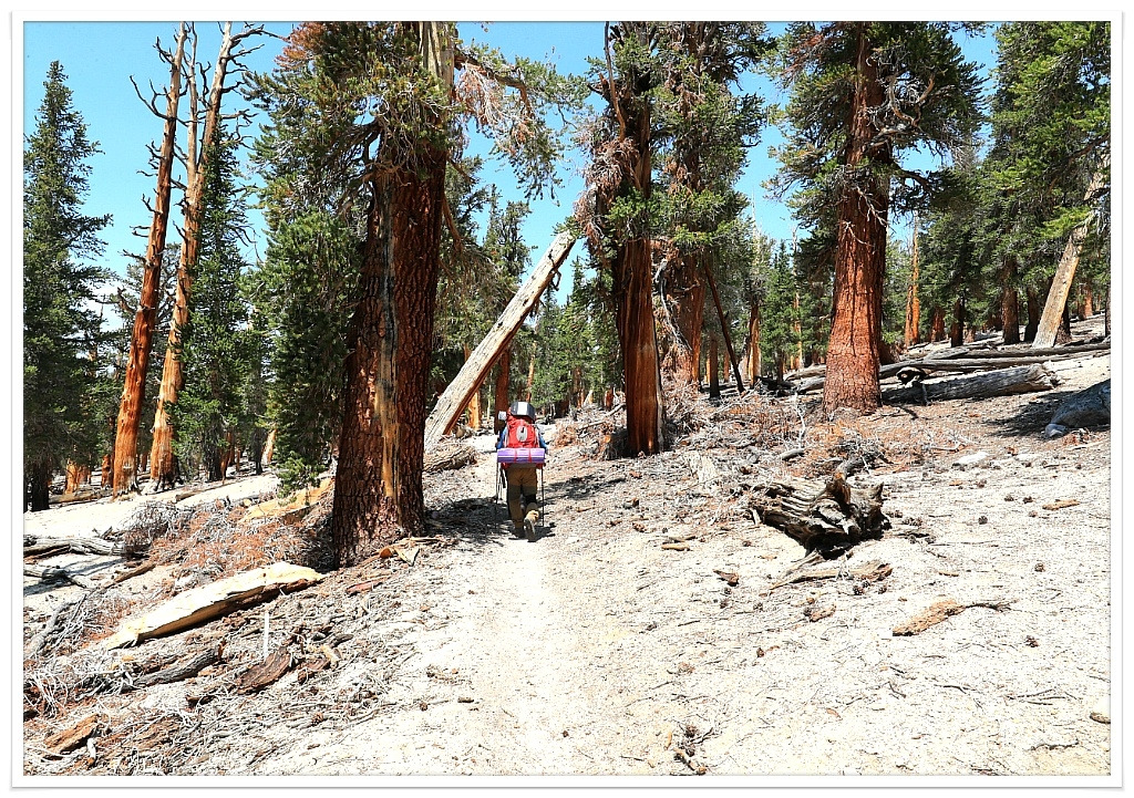 패스에 오르면 이전과 다른 또 다른 세계가 펼쳐진다. 패스에 오르면서 느끼는 고통에 대한 보상으로 새로운 풍경을 선물한다. 산은 온통 푸석 바위로 이 로어진 민둥산들이 펼쳐진다. 그 산에는 아무런 생물도 살 수 없는 척박한 땅이다. 그 산 아래로는 세콰이아 나무가 인디언의 역사를 말없이 전해 준다. 꿀 같이 달콤한 짧은 휴식을 끝내고 다시 길에 선다.