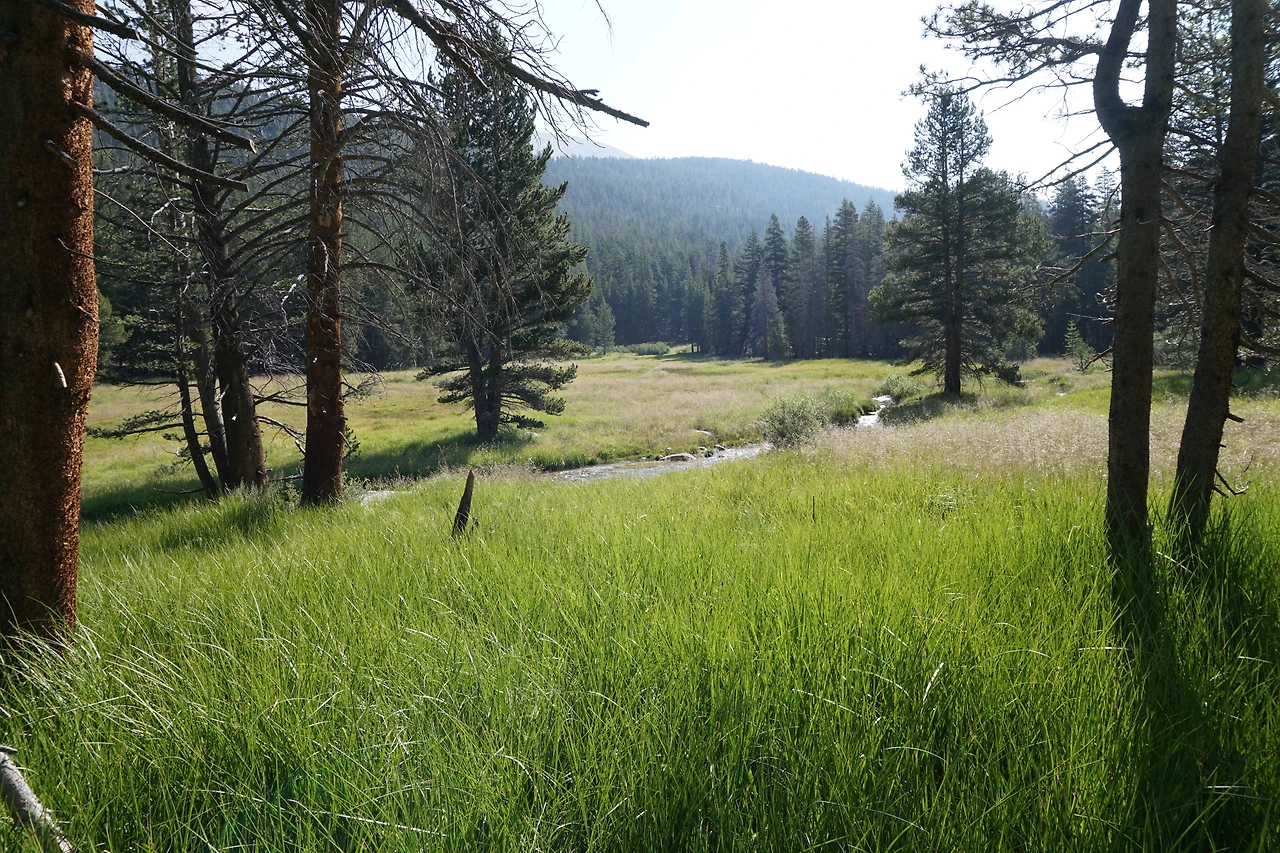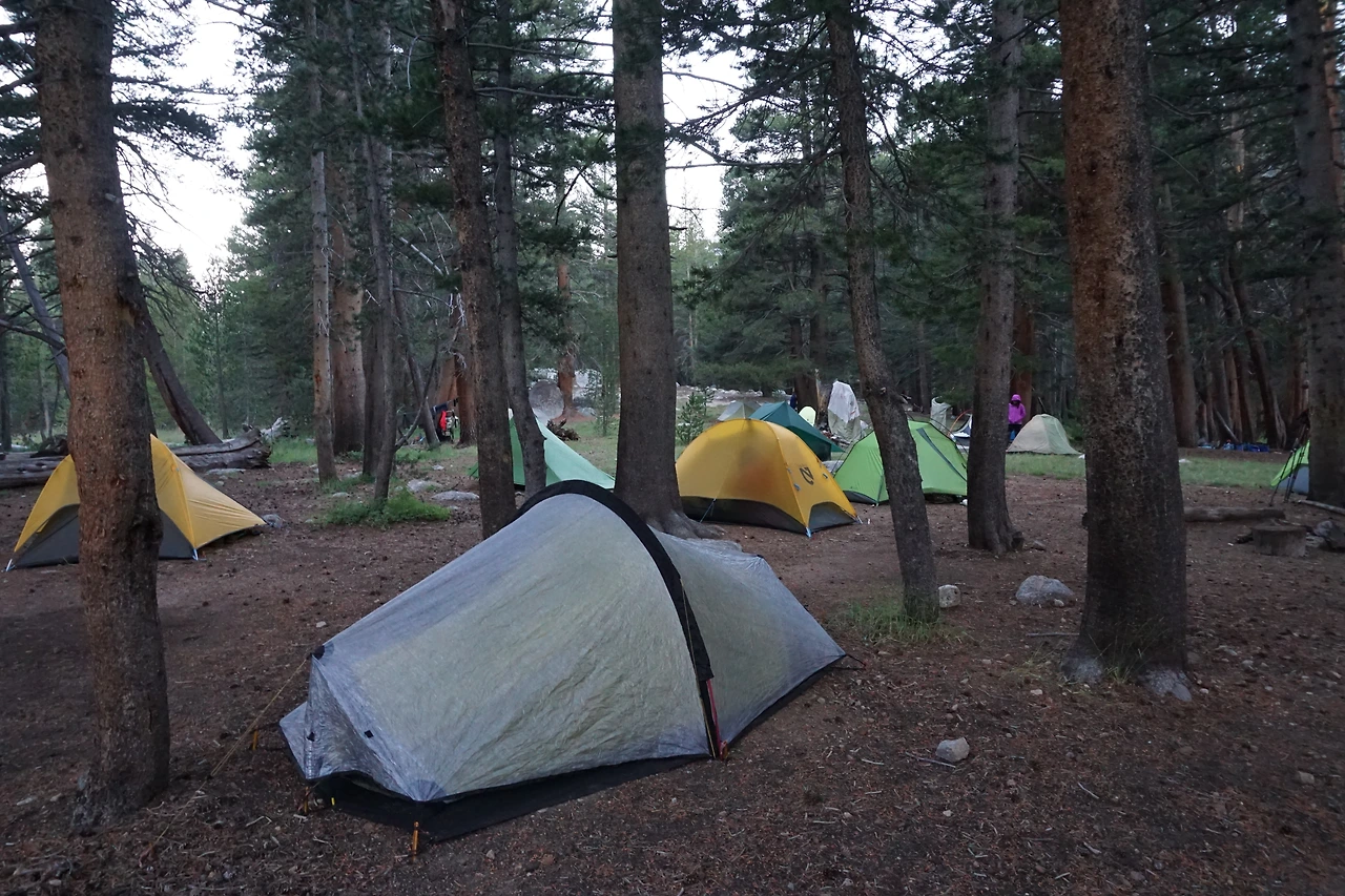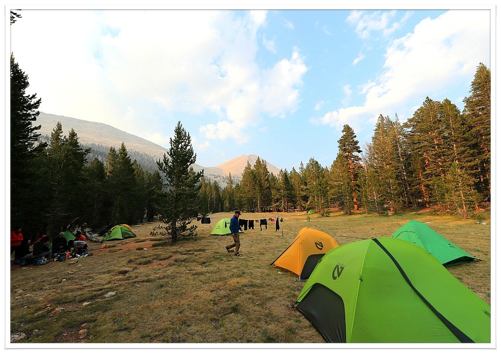 크렙 트리 메도우에 도착하니 아침에 먼저 출발했던 재미 베트남 청소년들이 이곳에서 하루를 쉬어 가려고 탠트를 설치하려고 한다. 이곳 분들은 오후 늦게까지 걷지 않고 오후 2~3시경에 트레일을 끝낸다. 크렙 트리 메도우의 개울을 건너기 전과 건넌 후에도 탠트를 칠 수 있는 공간이 있다. 먼저 도착한 트레커들은 그늘에서 물에서 더위를 식힌다.