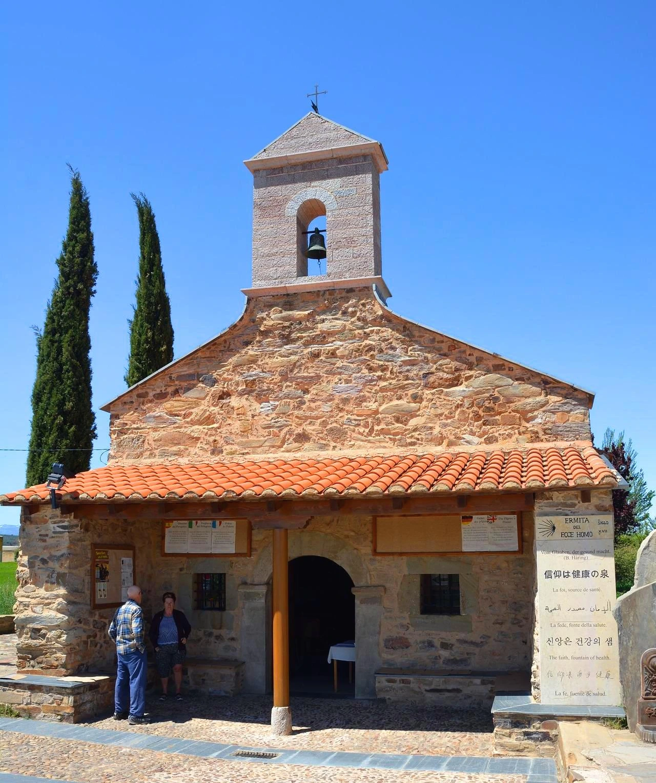 고속도를 건너기 전 작은 마을을 지나는데 한글이 눈에 뜨인다. 작은 성당인의 입구에 "신앙은 건강의 샘"이란 글귀가 있다. 한글에 이끌려 잠시 들렸다 걸었다. 육교를 넘어 무루시아로 가는 가는 길은 한낮으로 가면서 열기가 점점 뜨거워진다. 너무 더워 28.7km를 걷고 이 마을 공립 알베르게에 들었다.