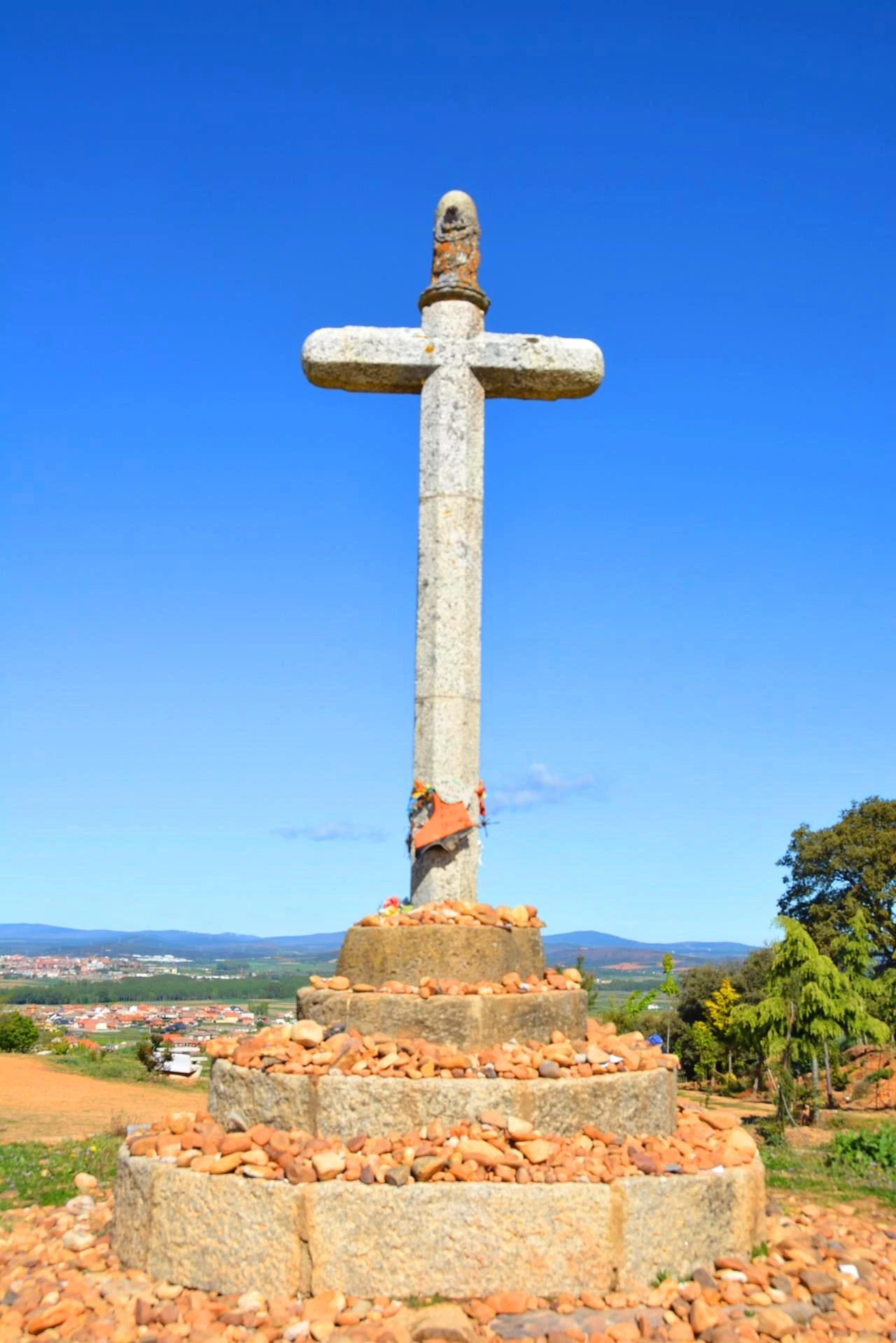 산토 토리비오 십자가 언덕에 올라서니 멀리 아스트로가가 빤히 내려다 보인다. 그곳까지 6.2km로 먼 거리는 아니다. 십자가 옆에서 기타를 치며 순례자들을 응원하는 그의 옆에는 도네이션 함이 있다. 언덕을 내려 서니 왼쪽으로 전원주택이 마음을 사로잡는다. 이런 아름다운 자연에 그림 같은 집이 주변과 너무 잘 어울린다. 그곳 순례길에는 갈증에 지친 순례자가 물을 마시는 동상이 서 있다. 스페인의 더위에는 목마름이 가장 큰 고통이다.
