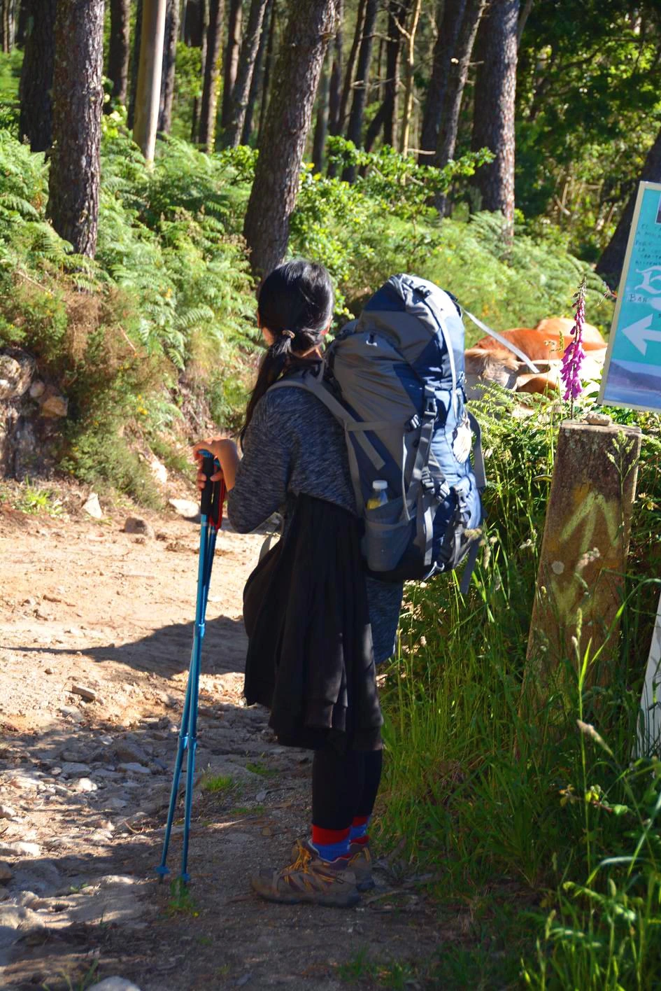 그녀는 피니스테라에서 왔기에 내가 걷는 방향과 반대 방향으로 어제 걸은 길을 걷는단다. 새벽인데 공기가 차지 않아 출발 때부터 바람막이 옷을 벗고 간편하게 출발을 하였다. 피니스테라를 가는 길은 초반에 오름길이 많아 힘이 들 수 있고 땀이 날 수 있으니 체온조절을 위하여 바람막이를 입고 걷는다.