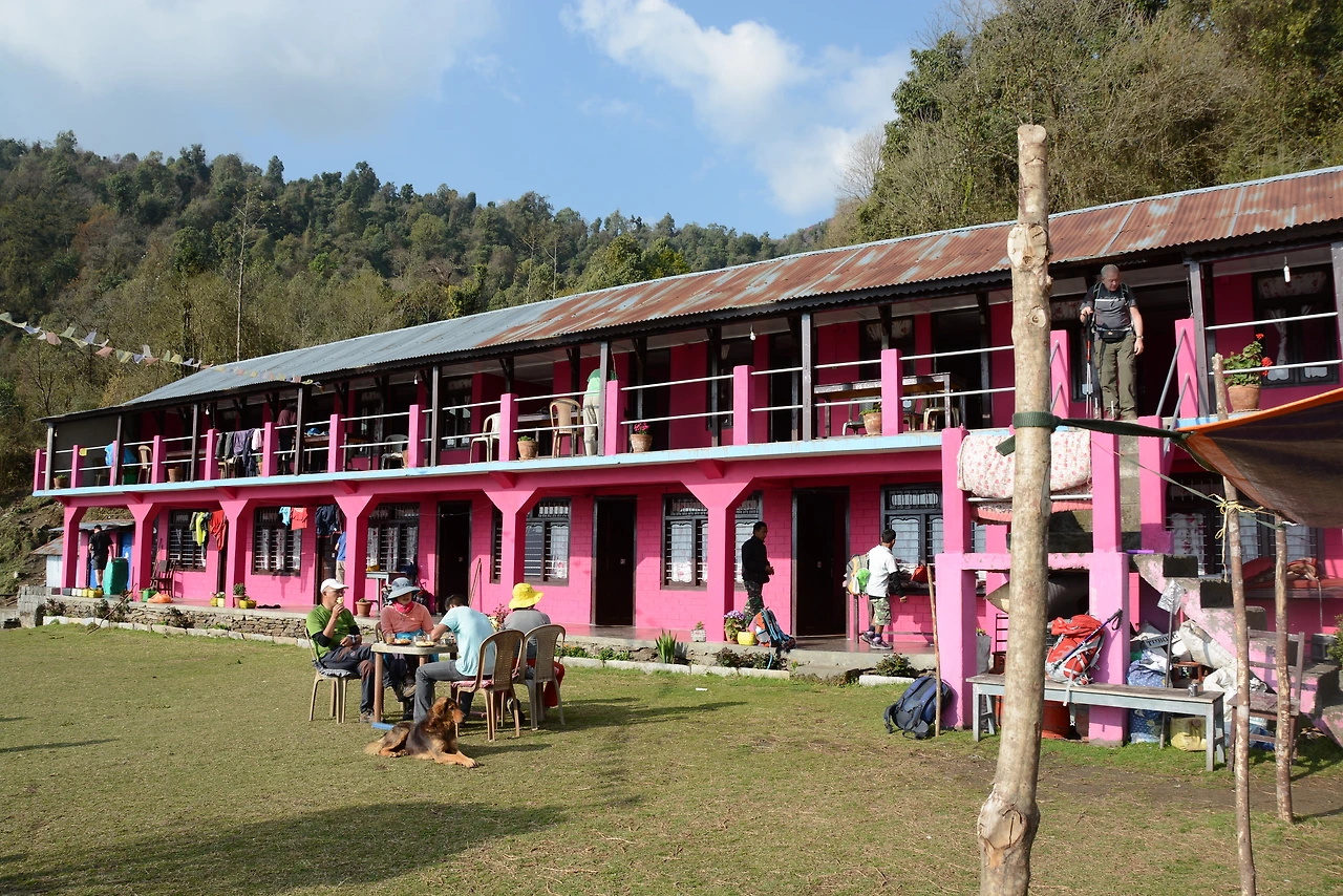 작은 마을을 지나다 보면 꼬마애들이 "Candy! Candy! "한다. 학교 가는 길에 책을 읽으며 가는 상급생이 있는가 하면 징징 울면서 언니의 손을 잡고 가는 동생도 있다. 여긴 산아제한이 없고 조기결혼으로 집집마다 아이들이 많다. 구루중에서 촘롱으로 가는 길은 완만한 오르막으로 들판에 밀이 많이 자랐다. 11시경 촘롱에 도착하여 오랜만에 한식을 먹을 수 있었다. 김치찌개가 500Rs다. 네팔 음식보다 비싼 게 한식이다. 여기는 한국분들이 많이 쉬어 가는 곳이다. 한식을 먹을 수 있기 때문이다. 백숙은 3,000Rs인데 모녀팀이 주문을 한다. 네팔 물가를 생각하면 비싼 가격이다. Abc 트레킹을 다녀오는 길이라 수고한 자신들에게 상을 주는 거란다. 네팔 닭은 그냥 놔서 키운 닭이라 육질이 쫄깃쫄깃한 게 시골에서 사위가 오면 잡아 준다는 장모님 표 씨암탉 맛이 난다.