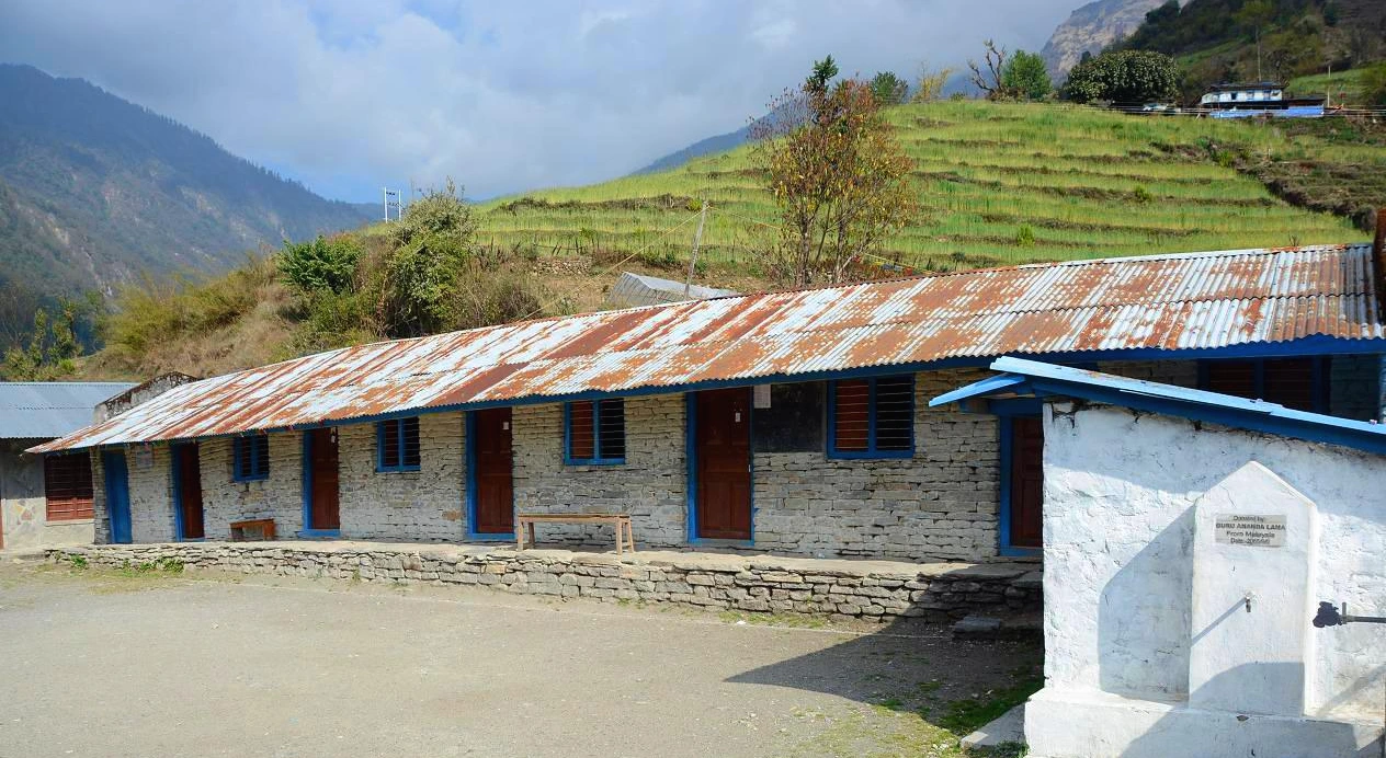 계곡을 건너기 위해서는 출렁다리를 건너야 구르중으로 갈 수 있다. 몇 집이 살고 있지 않는 곳이지만 구르중에는 초등학교가 있다. 주변 산속 마을의 아이들이 등교를 한다. 멀리서 오는 아이들이 있어 등교시간이 10시다. 등교를 앞두고 밥상을 펴 놓고 속제를 한다. 어디서나 숙제는 아이들에게 피곤한 짐인가 보다. 어떤 아이는 책을 펴놓고 예습을 하는지 소리를 내어 책을 읽기도 한다. 그런 모습에 시간여행을 하여 예전의 나의 어린 시절을 반추하는 시간이 되곤 한다.