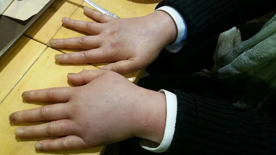 림프 부종은 부은쪽과 안 부은 쪽에 차이가 확연하다. 항암영향으로 손톱도 시커멓게 변했다. 절대 손 안씻은거 아님.
