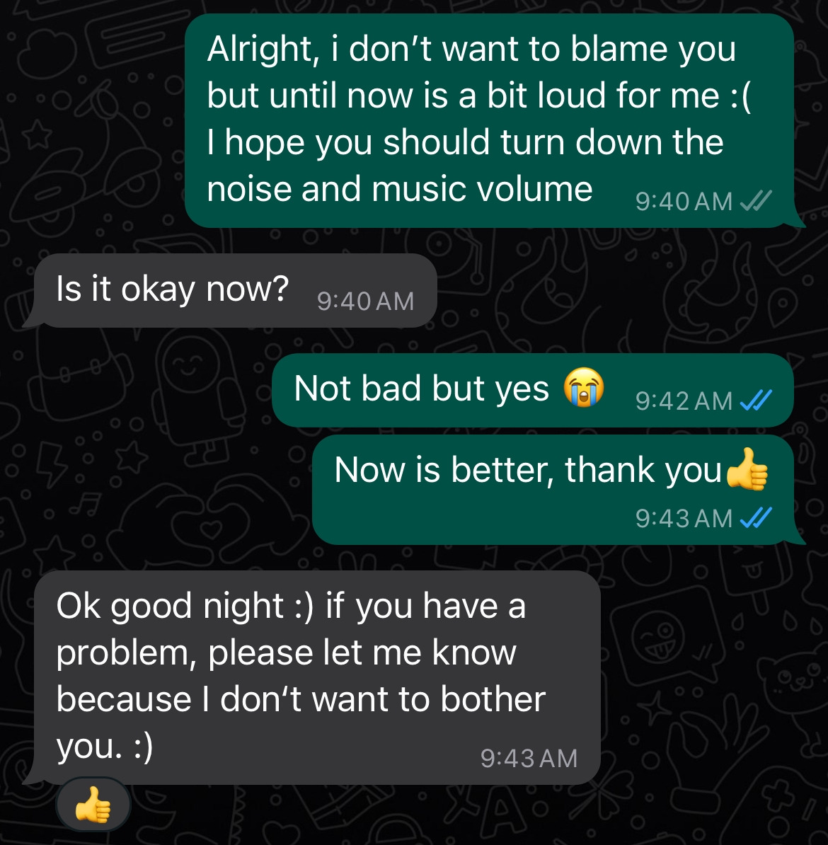 "그동안 나 때문에 얼마나 힘들었을까. 말해주지 않았다면 나는 계속 시끄럽게 지내며 이웃에게 피해를 줬겠지? 이제라도 알게 돼서 다행이다."
