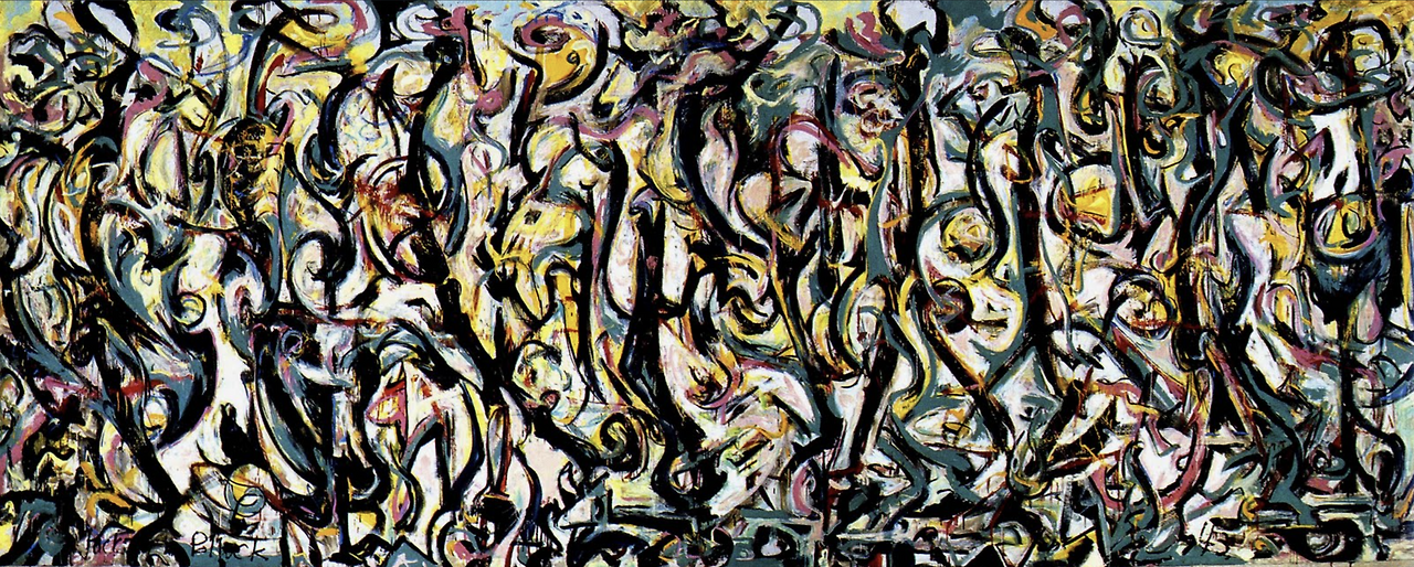 물론, 잭슨 폴록은 드립 방식의 그림을 그리기 전에도 추상 표현주의의 길을 걷고 있었습니다. 아래의 그림은 그가 페기 구겐하임의 의뢰를 받아 제작한 가로 6미터 길이의 <벽화>입니다.