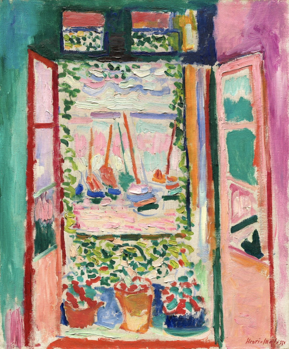 색깔이 너무 이쁘지 않아요? 서로 대조를 이루며 벽과 창문에 칠해진 초록색에 분홍색에... 아직 추상 쪽으로는 가지 않아서 창 밖으로 바다와 배들이 보이는 예쁜 창가의 모습을 알아보기도 쉽고, 두껍게 휙휙 날린 듯한 붓자국들이 운동감도 주고, 보기에 참 재미있어요. 자유로운 붓터치 때문에 보면 볼수록 신이나서 어깨가 들썩들썩해지는 것 같아요. 그림에서 '즐거움'이 느껴진달까요?