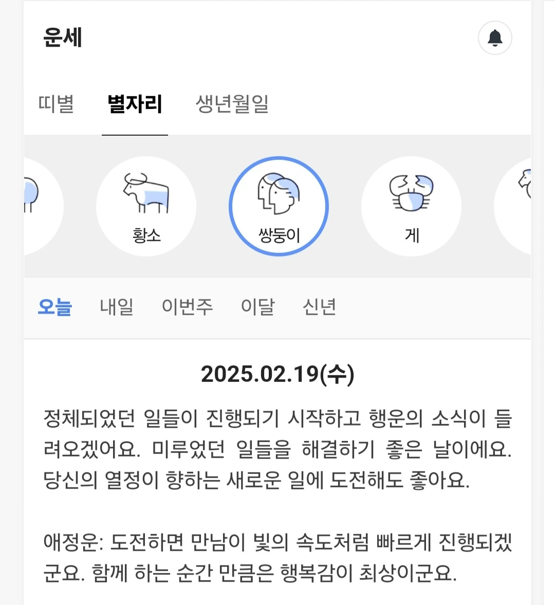 신기했다. #운세를 눌러보니 오늘의 운세가 나왔다.