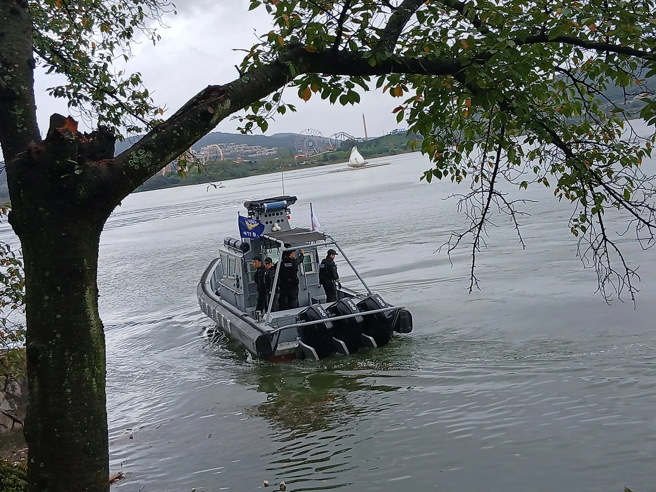 보문단지는 이번 국제대회를 앞두고 단장도 하지만 미리 철통보안도 하는듯 해경보트가 뭔가 탐색하고 설치하고 있었다.