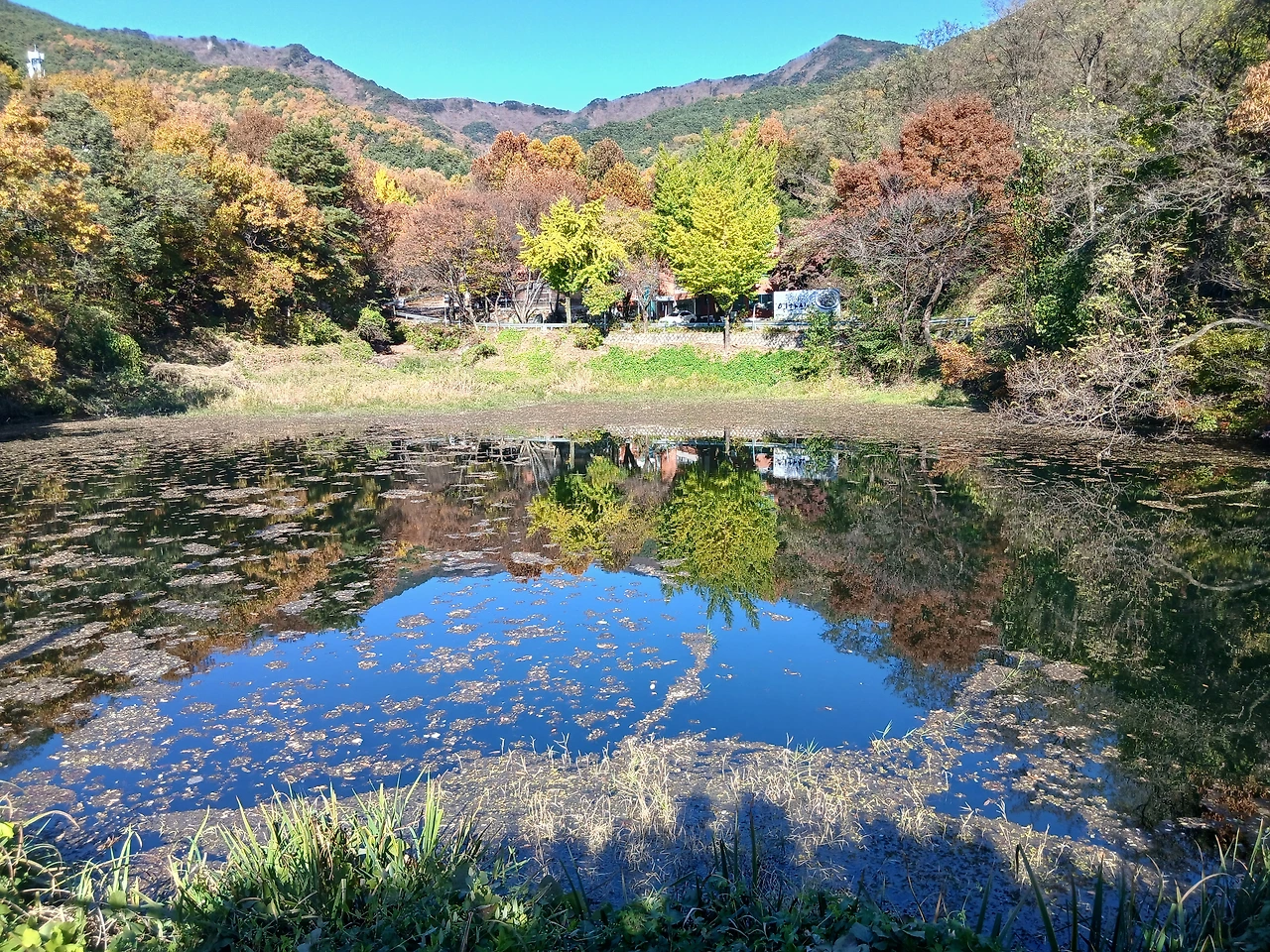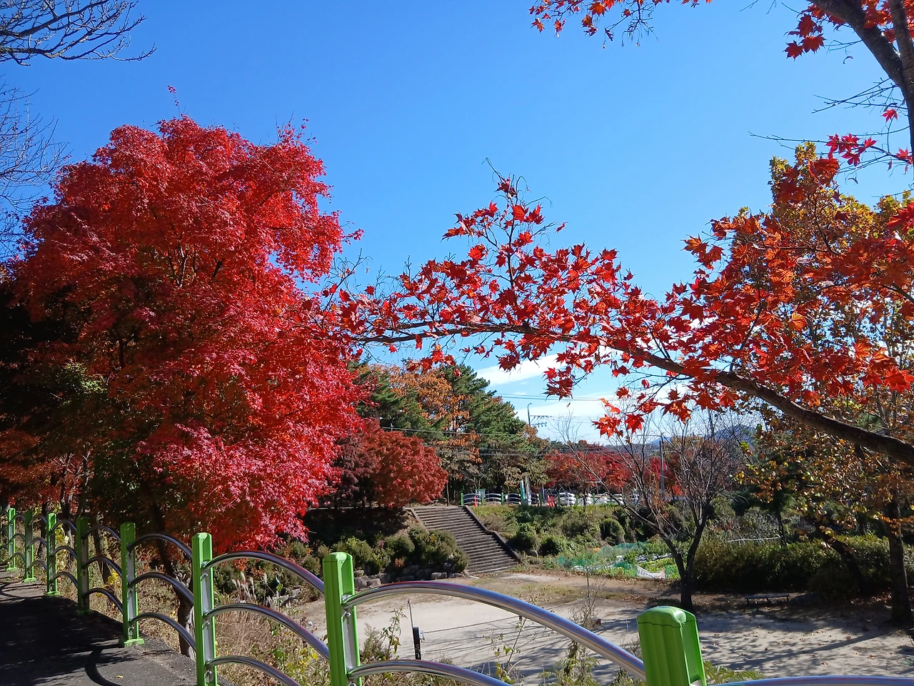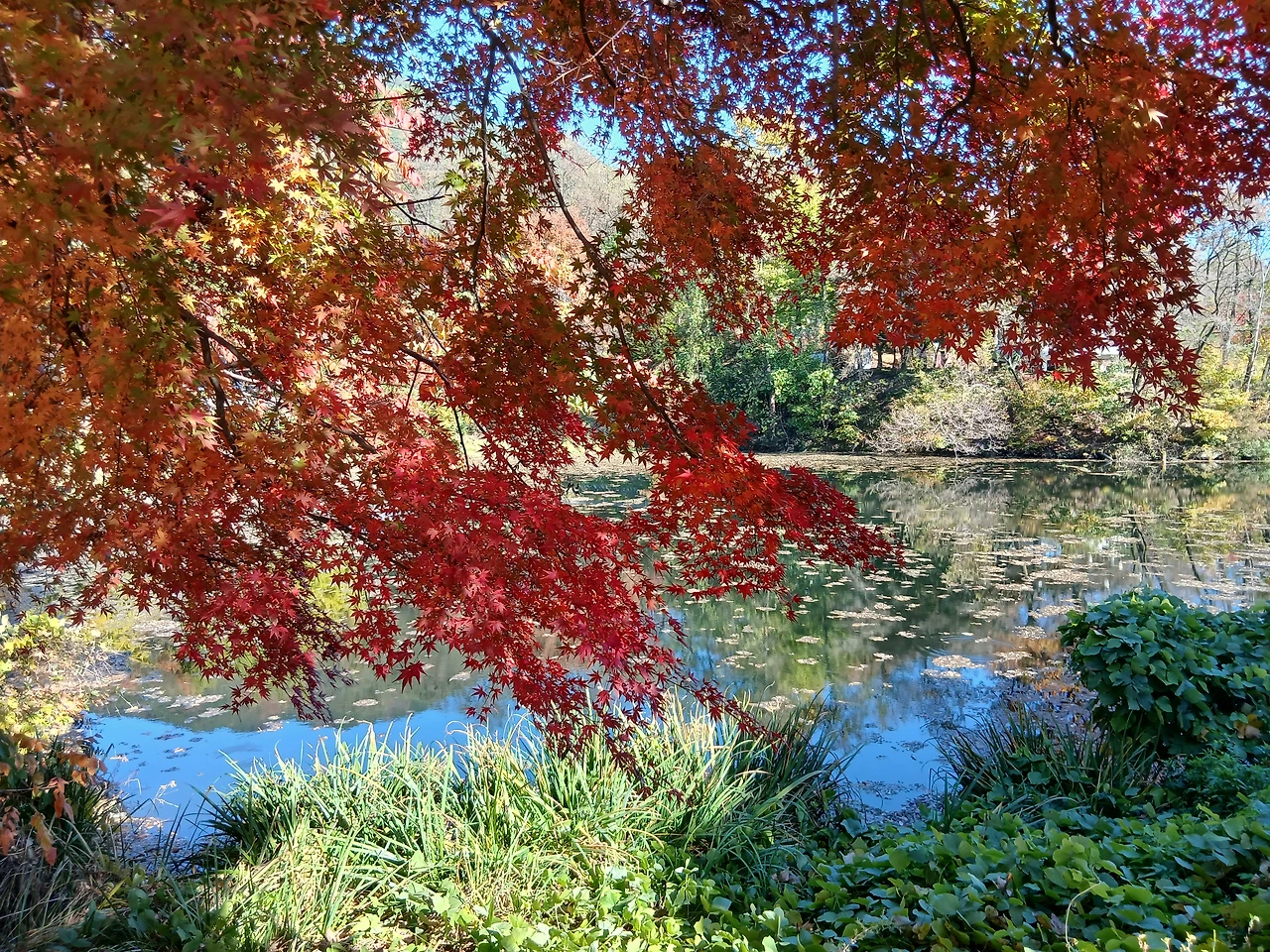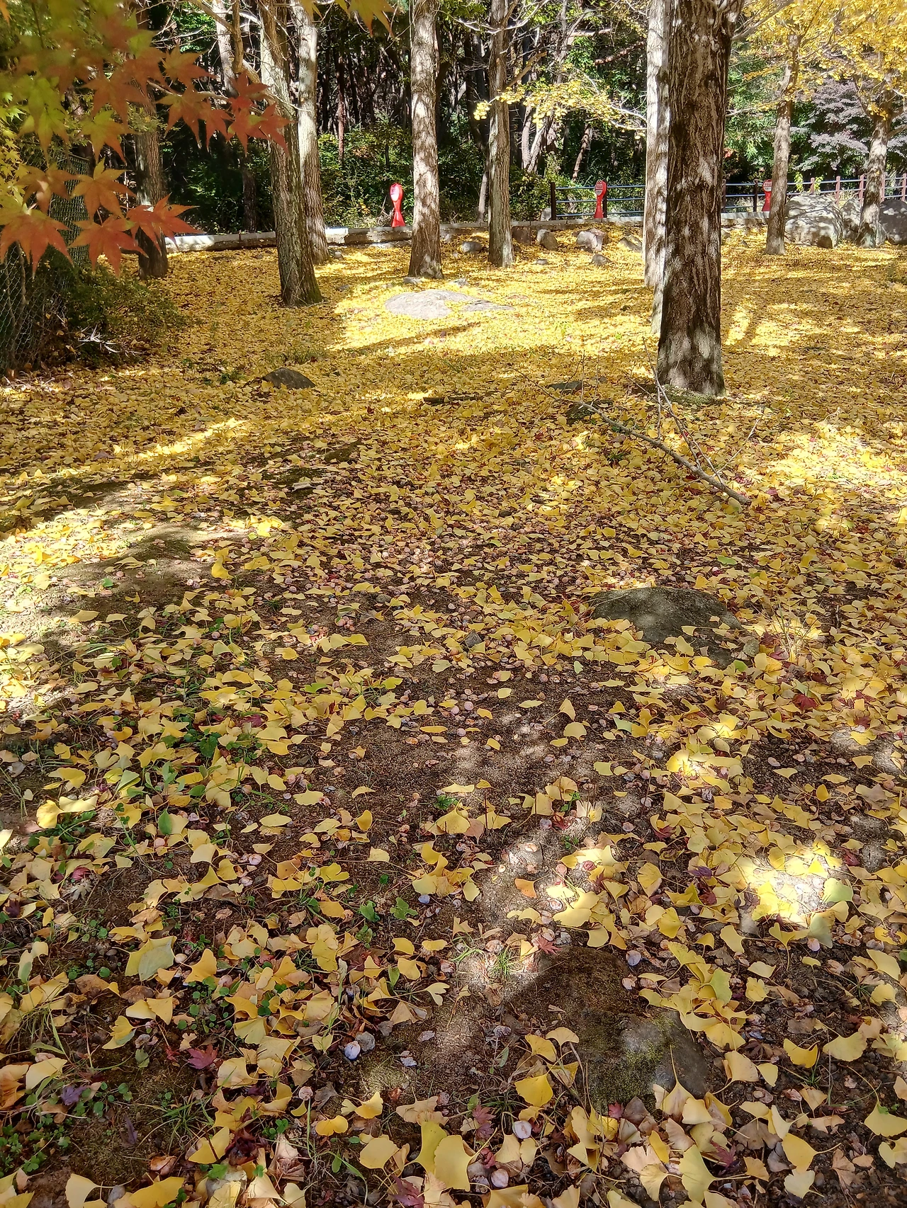 이미 노란 단풍이 빨간 단풍이 익을 대로 익어 이리 쌓이고 저리 뒹군다. 벌써 가을 끝인가 싶다.