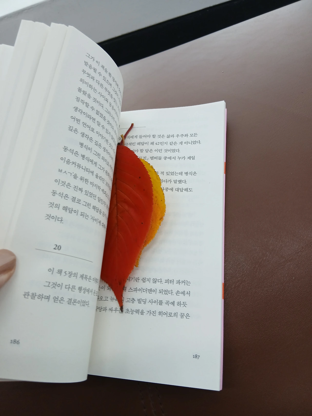 뛰다가 주운 낙엽들은 책갈피에 끼웠지만 낙엽으로 연애편지 쓰던 나이가 아니다.