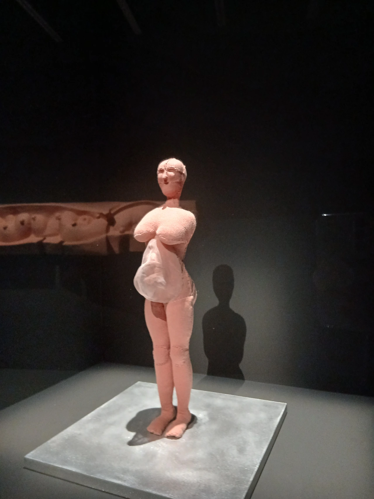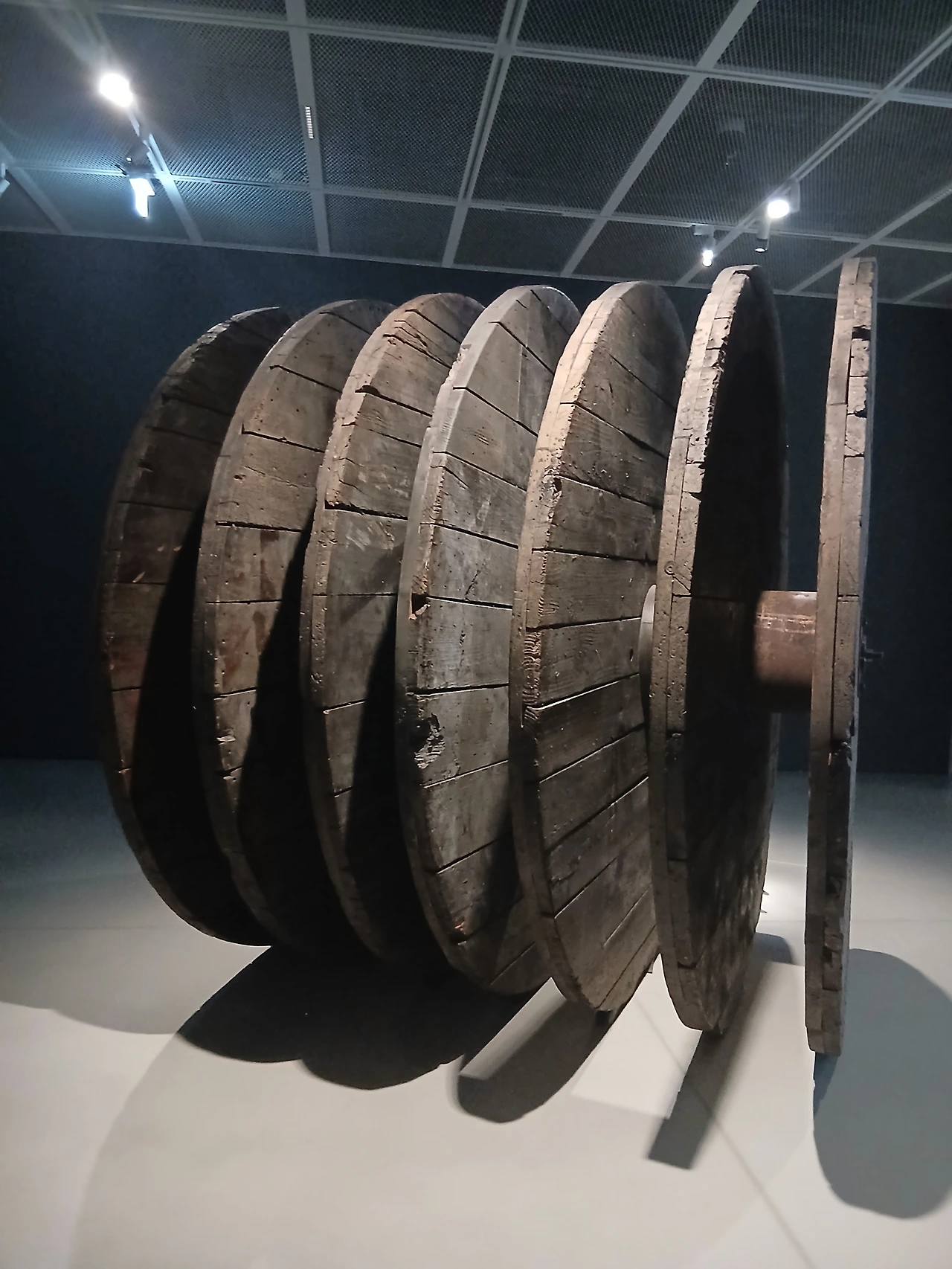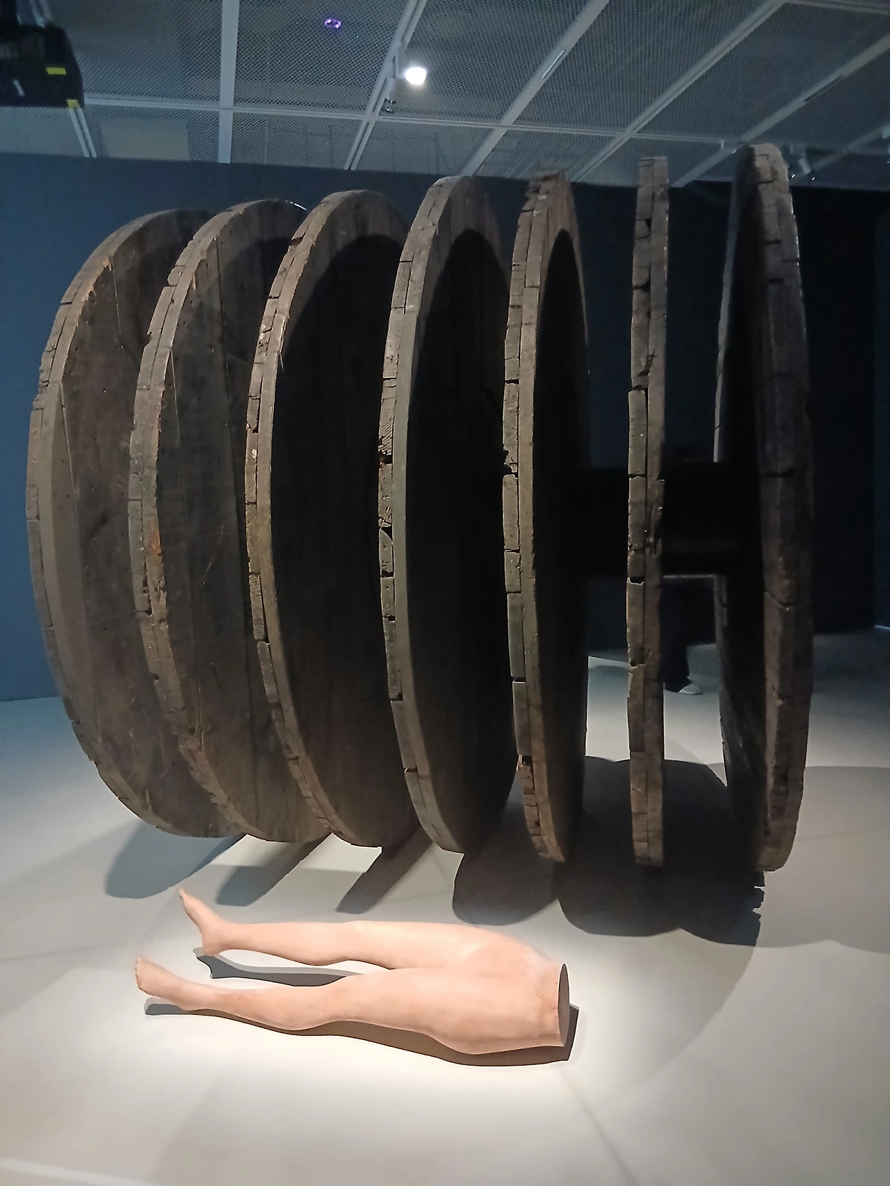 이 작품 재료는 1980년대 미국에서 사용하던 전선 드럼통으로 정확히는 공업용 전화케이블이라고 한다. 여기서 원형 나무판 일곱 개, 그 앞에 놓인 하반신, 마치 마네킹이 누워있는 거 같아 멈칫했지만 시간 앞에서 누구나 평등하다는 걸 나타냈다.