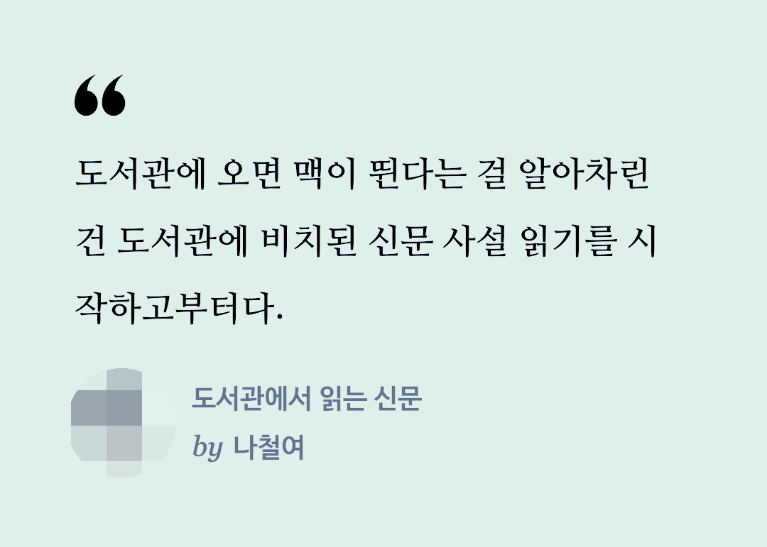 도서관에 오면 맨 먼저 신문사설을 본다.