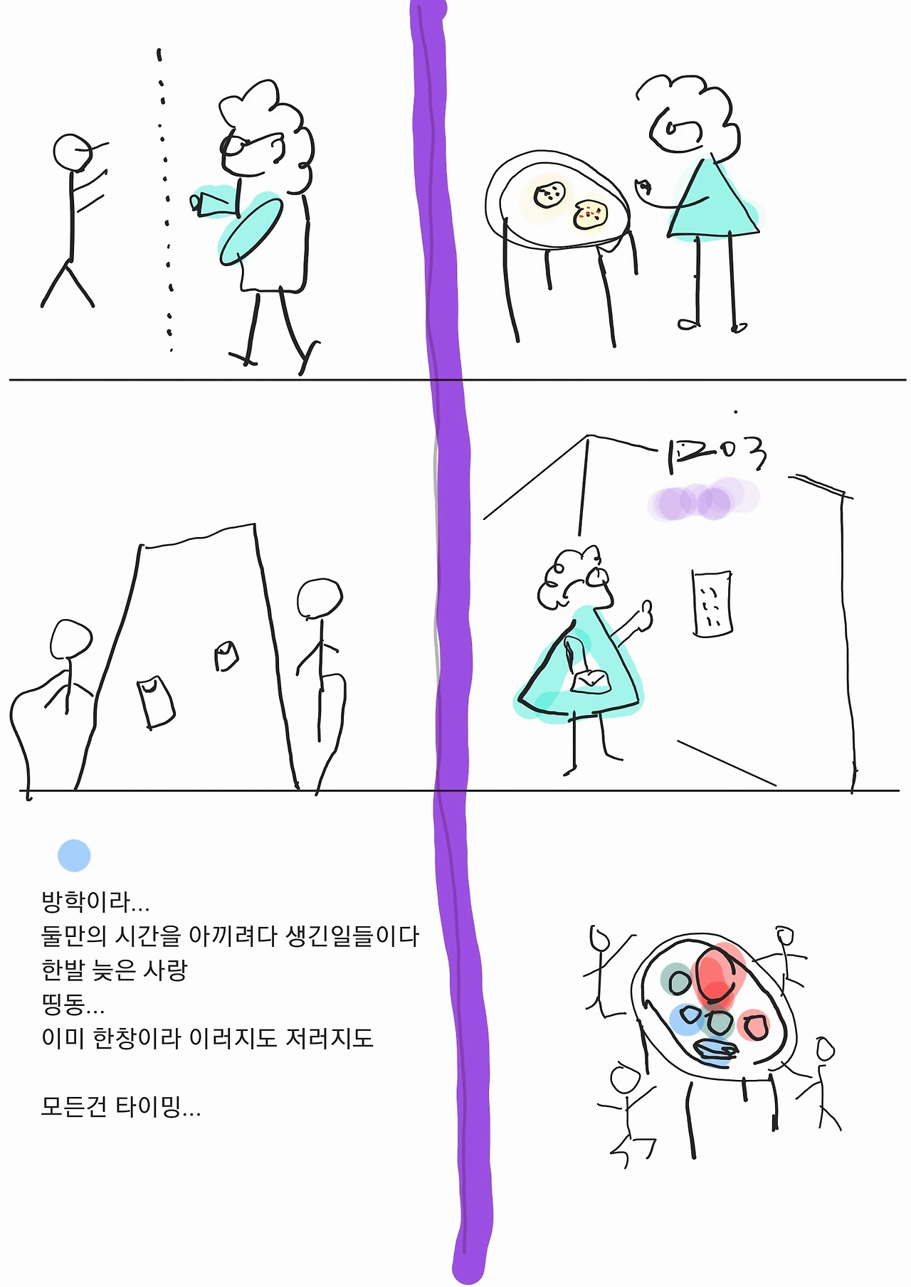 깜냥도 안되지만 미리 생각하고 짜 둔 시나리오이기에 더 빠르고, 못 그리는 그림 실력이라 더 짧은 시간이다.