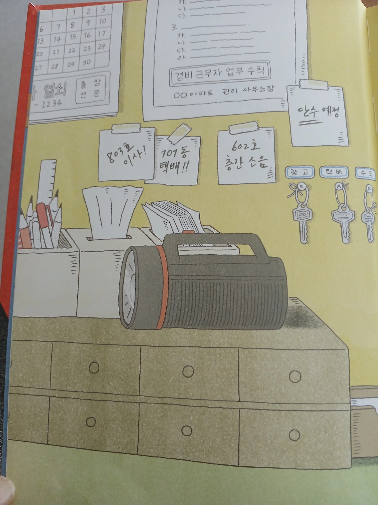 우선 1편은 '아파트의 평화를 지켜라'는 소제목에서 짐작하게 되듯, 아파트 경비원의 근무 중 일어나는 에피소드와 비하인드 스토리들이다. 소소한 문제들이 발생할 때마다 고양이 깜냥이가 조수가 되어 함께 해결해 나가는 이야기다.
