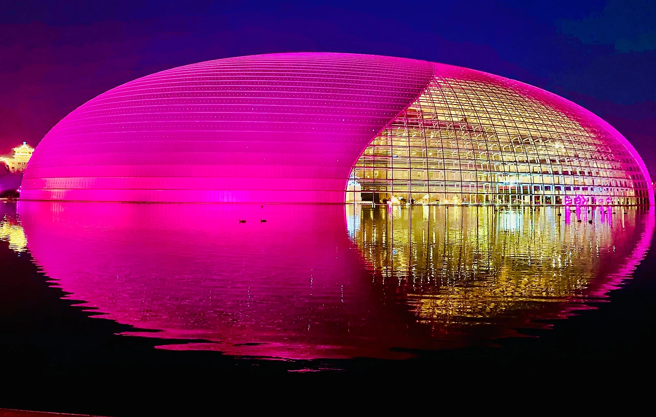 하지만 아래에서 비춰지는 푸른 빛과 홍등의 붉은 빛이 어우러져 전체적인 분위기는 마치 태극기를 연상케 합니다.