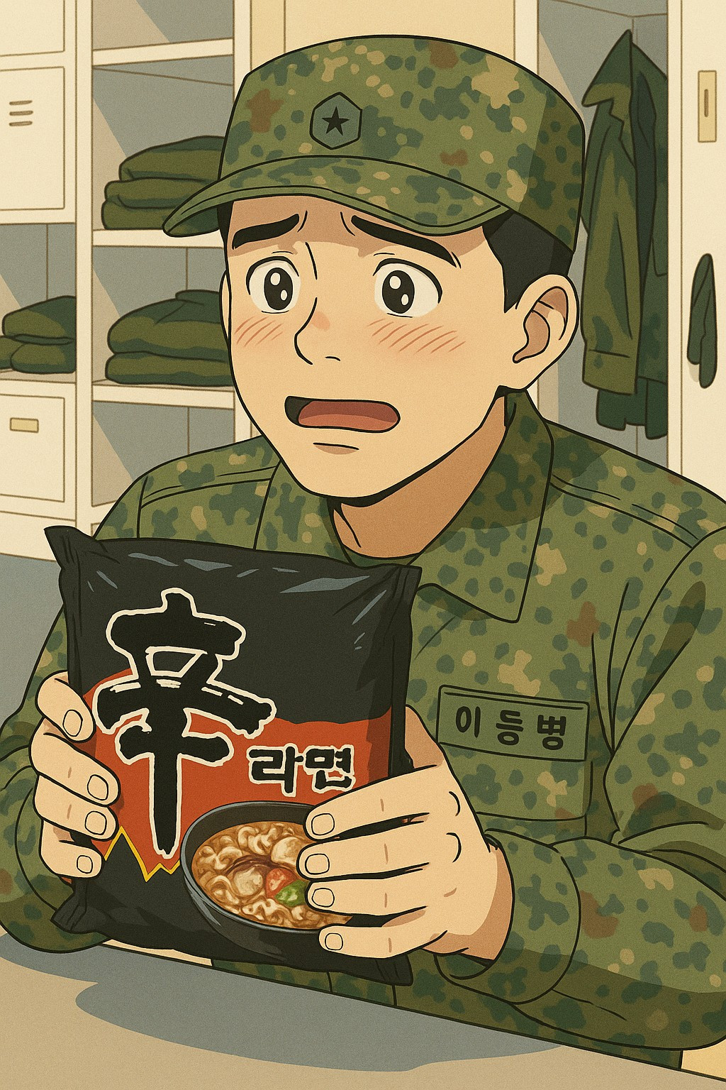 막내는 좀 안쓰러웠다. 불침번 마치고 말년의 엄호아래 뽀글이 끓여 먹는데, 그 영혼의 뽀글이가 마우스(mouth) 인풋직전 터진 봉투로 산화하여 나무젓가락만 빨고 있는 것 같은 가여운 작대기 하나.