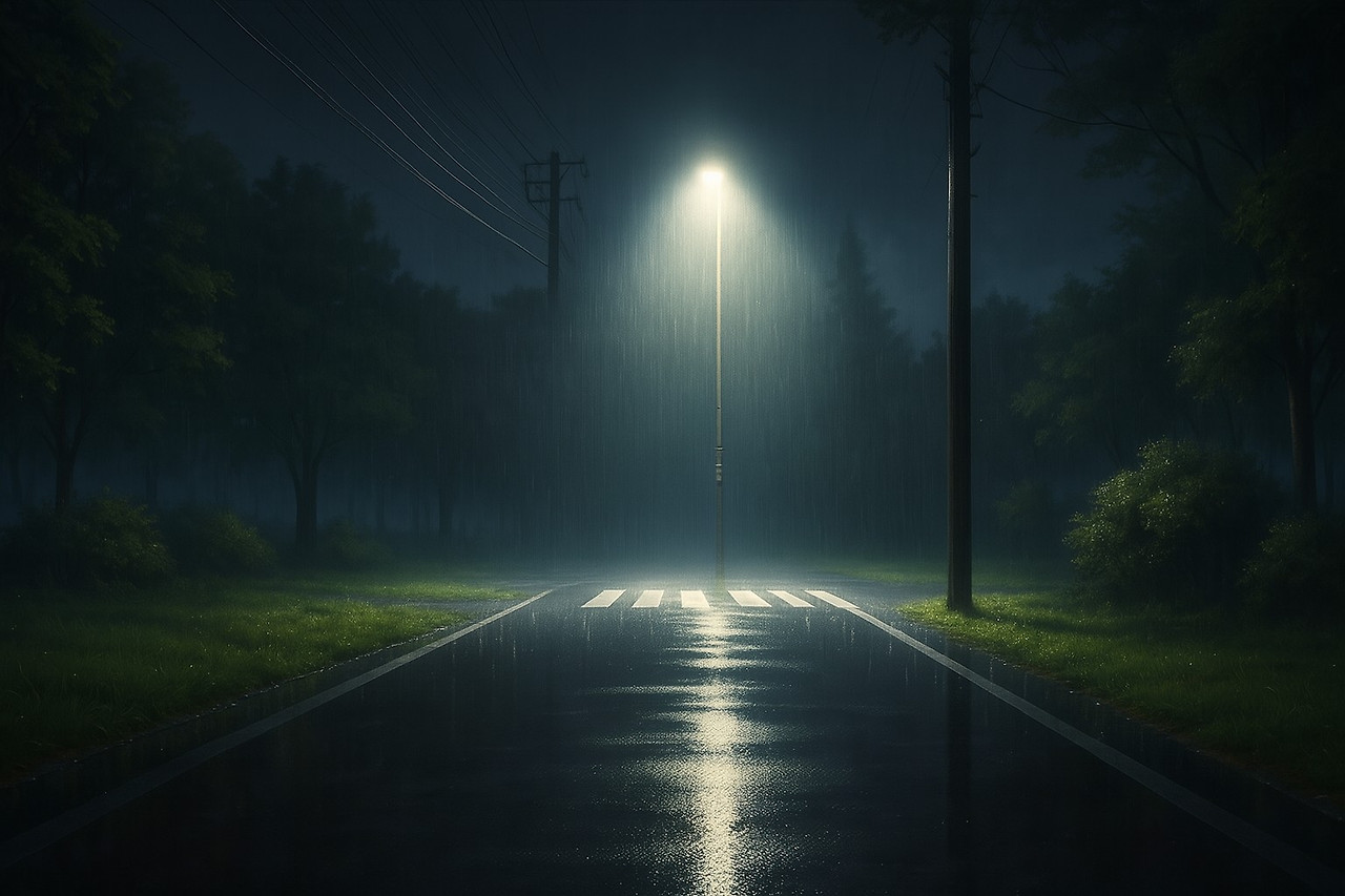 그 찰나의 비행 동안, 저 작은 불꽃은 과연 몇 개의 빗줄기들을 통과할 수 있을까.