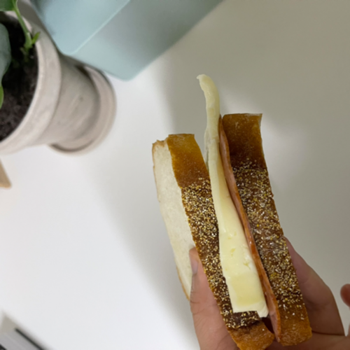 퇴근 후에 체력도 없고 만들기도 귀찮아져서 올리브오일만 빵에 바르고 슬라이스 햄과 치즈만 넣어서 먹었는데 생각보다 맛있었다. 역시 재료가 중요한 건가 싶었다.