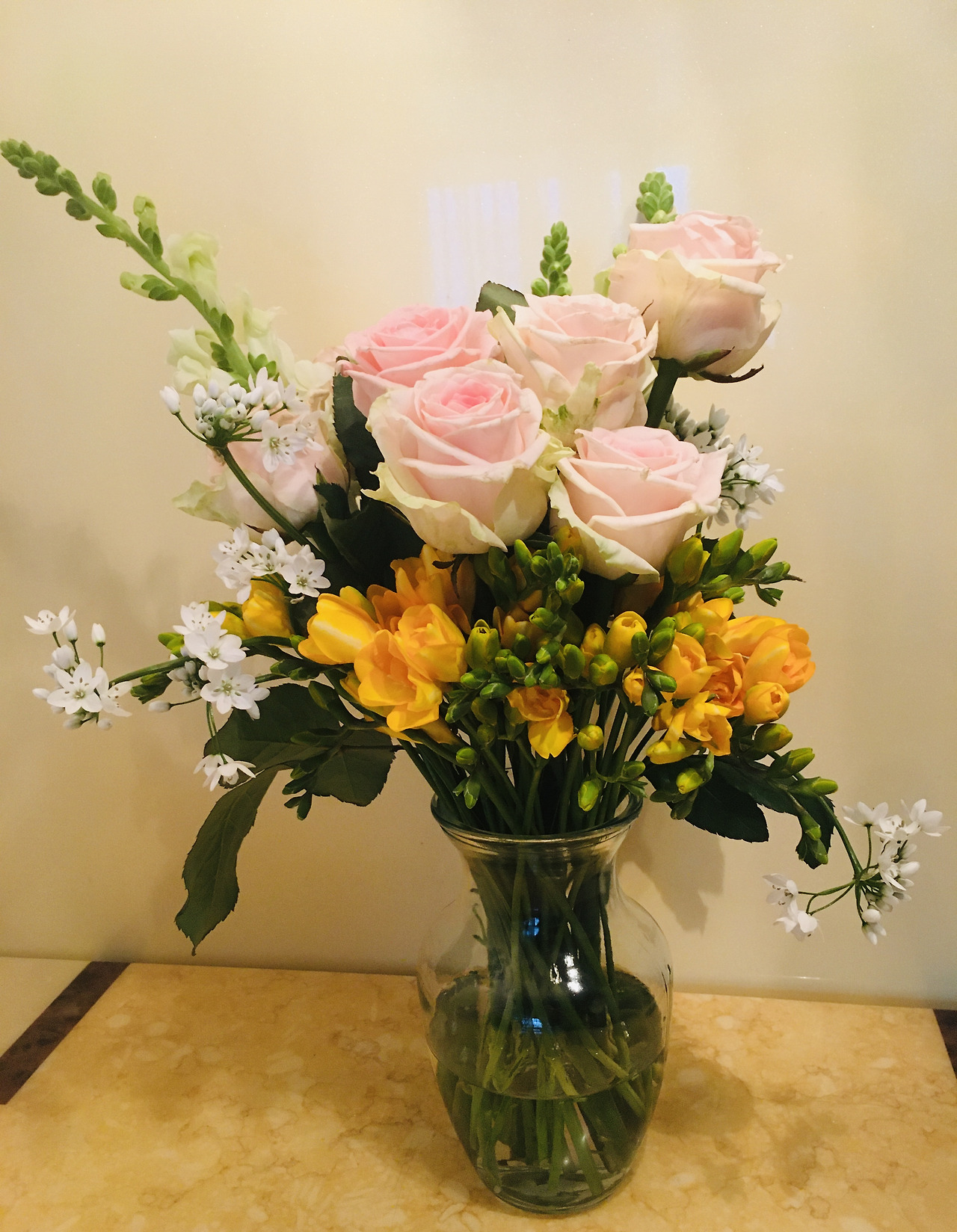 얼마 전 내 생일이라 가족이 모여 간단한 외식을 하기로 했다. 이제 며느리가 된 서희는 선물과 풍성한 꽃을 화병에 담아 들고 왔다. 프리지어에 장미와 금어초를 섞은 화려한 꽃병이다. 꽃이 남아 몇 송이 골라 친구네 가게에도 가져다주었다. 예쁘게 손질하여 가게 진열장에 꽂아 놓은 것을 보니 흐뭇했다.