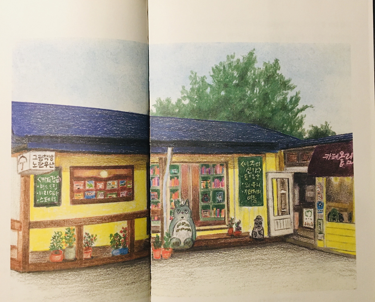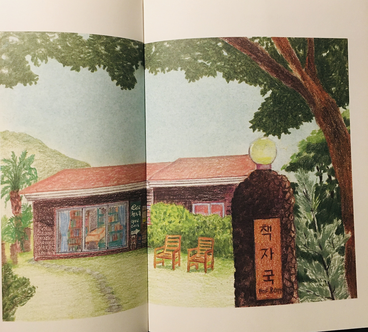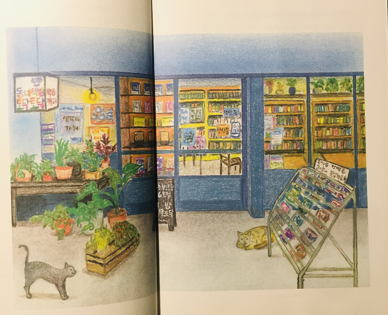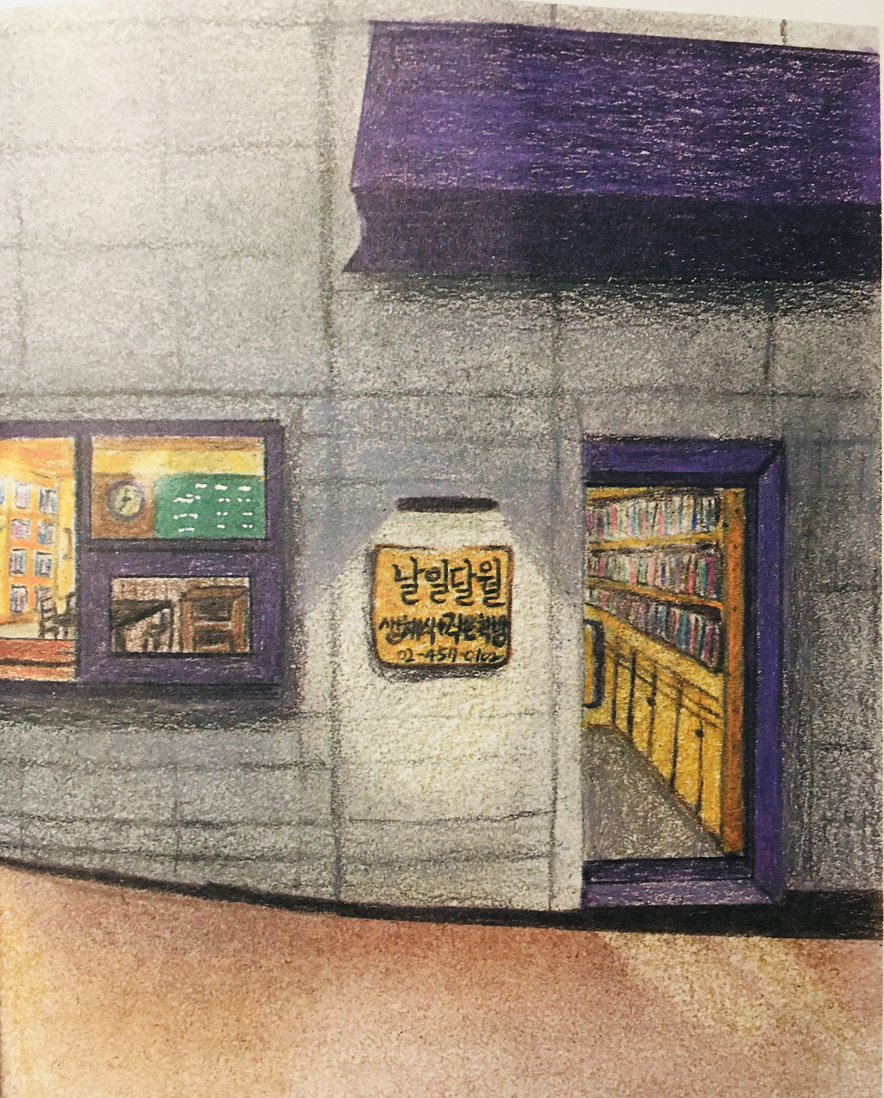 아름다운 동네 책방 그림들이 정말 다정하다. 누구라도 이런 책방 하나씩 가슴에 안고 싶은 생각이 들게 만든다. 노란 불빛이 새어 나오는 책방에서 동네 사람들 모여 책을 읽고 살아가는 시간을 나누는 모습을 그린다. 가지고 싶은 한 장의 그림 같은 풍경이다. 동네 책방이 견뎌낼 수 있도록 아낌없는 지원이 있어야 할 텐데….