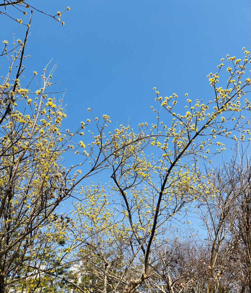 남은 산수유 가지마다 노란 생명들이