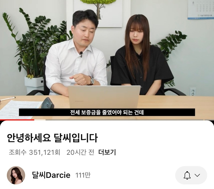 그리고 어제인가, 구독자 10만명 정도가 빠지자 해명 영상이 올라왔는 모양이다. 변호사 사촌오빠를 대동한 채. 영상초반에 변호사 오빠 이력이 자막으로 나온다. 나 이런 사람이니 참고하라며 선전포고를 하는 것만 같았다.