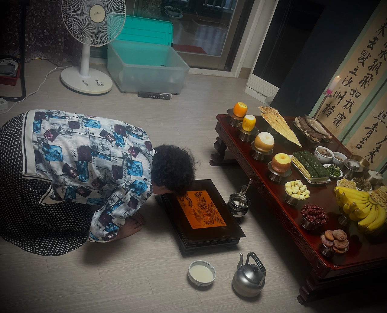 엄마랑 둘이 지내는 제사라 항상 혼자 잔을 올리고 절차를 간소화 해 절을 드리고 했었는데, 오늘은 엄마도 제 남편에게 잔을 한잔 드린다.