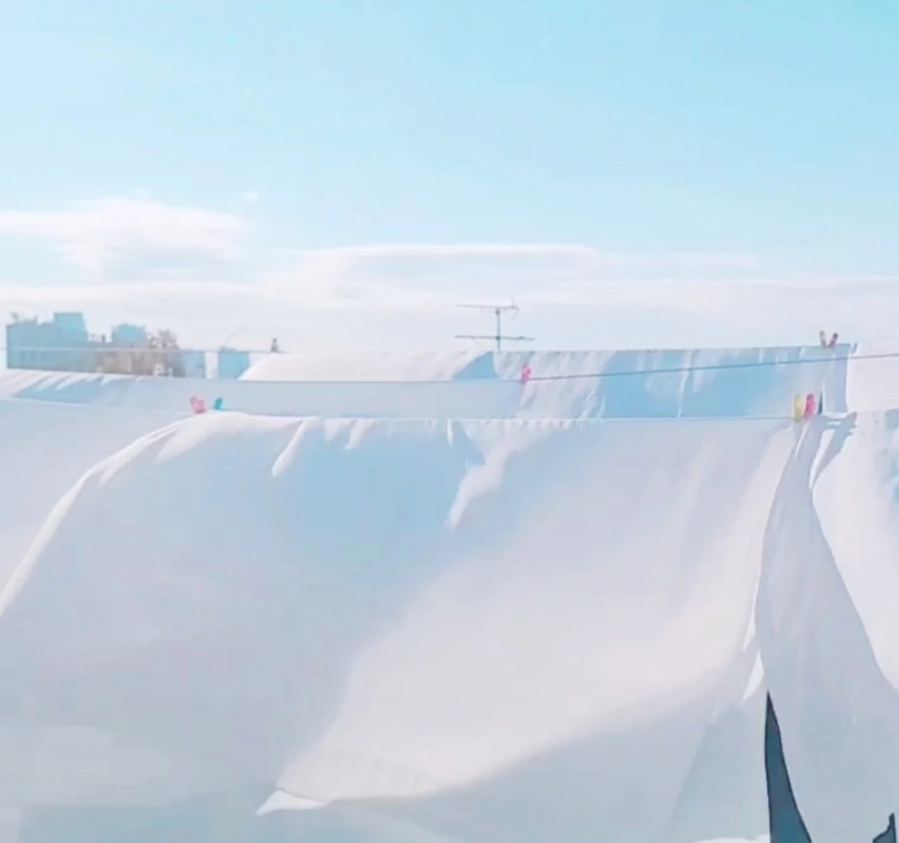 옥상에 올라가서 새하얀 커튼을 널었는데 바람이 거세서 날아갈까 봐 걱정되고 두려웠어요.