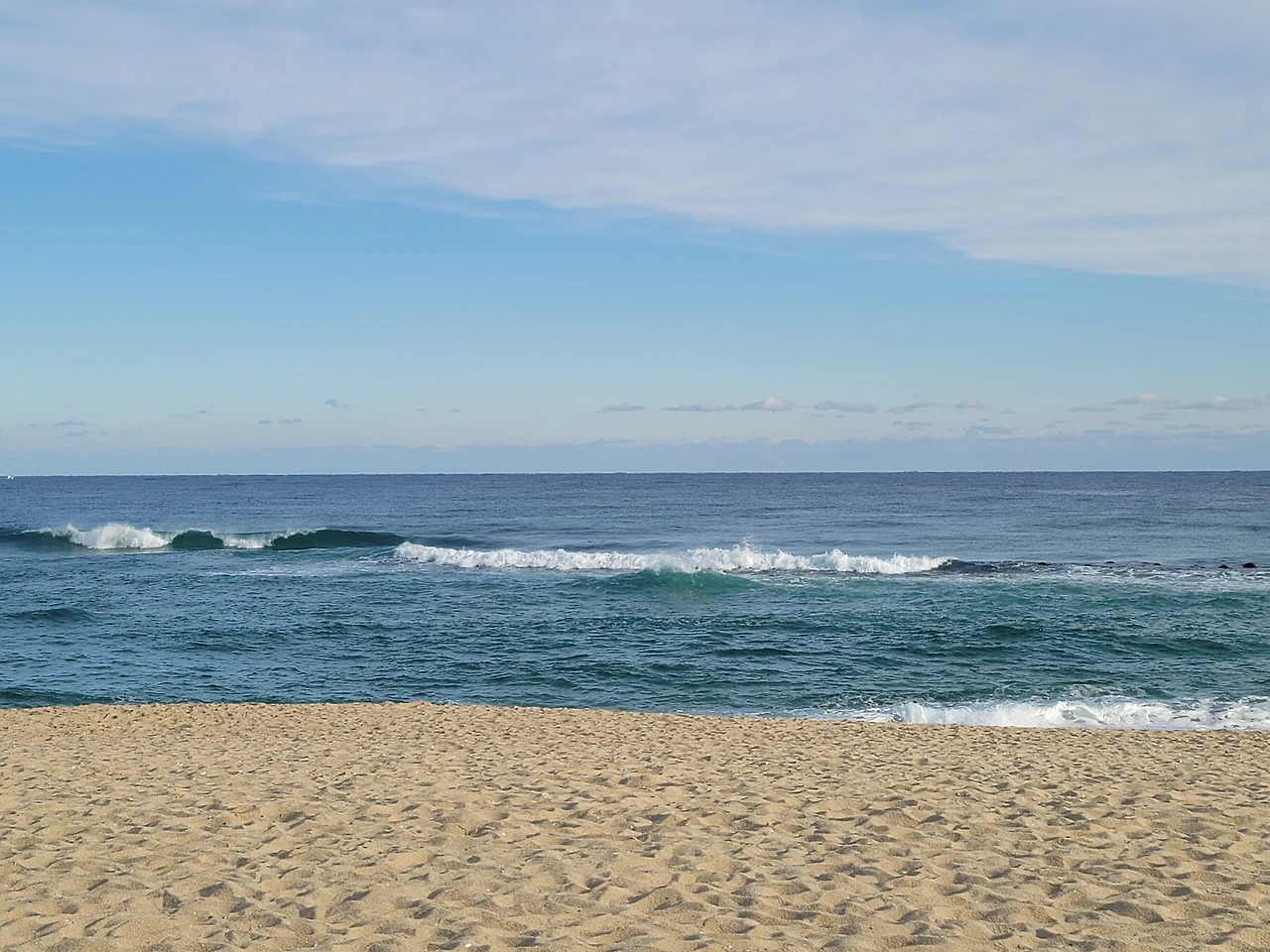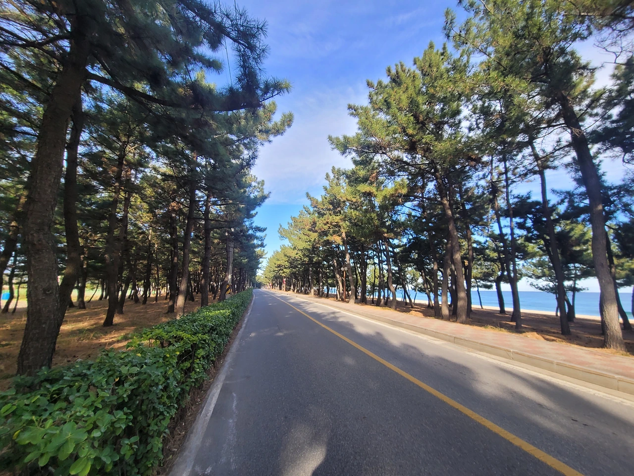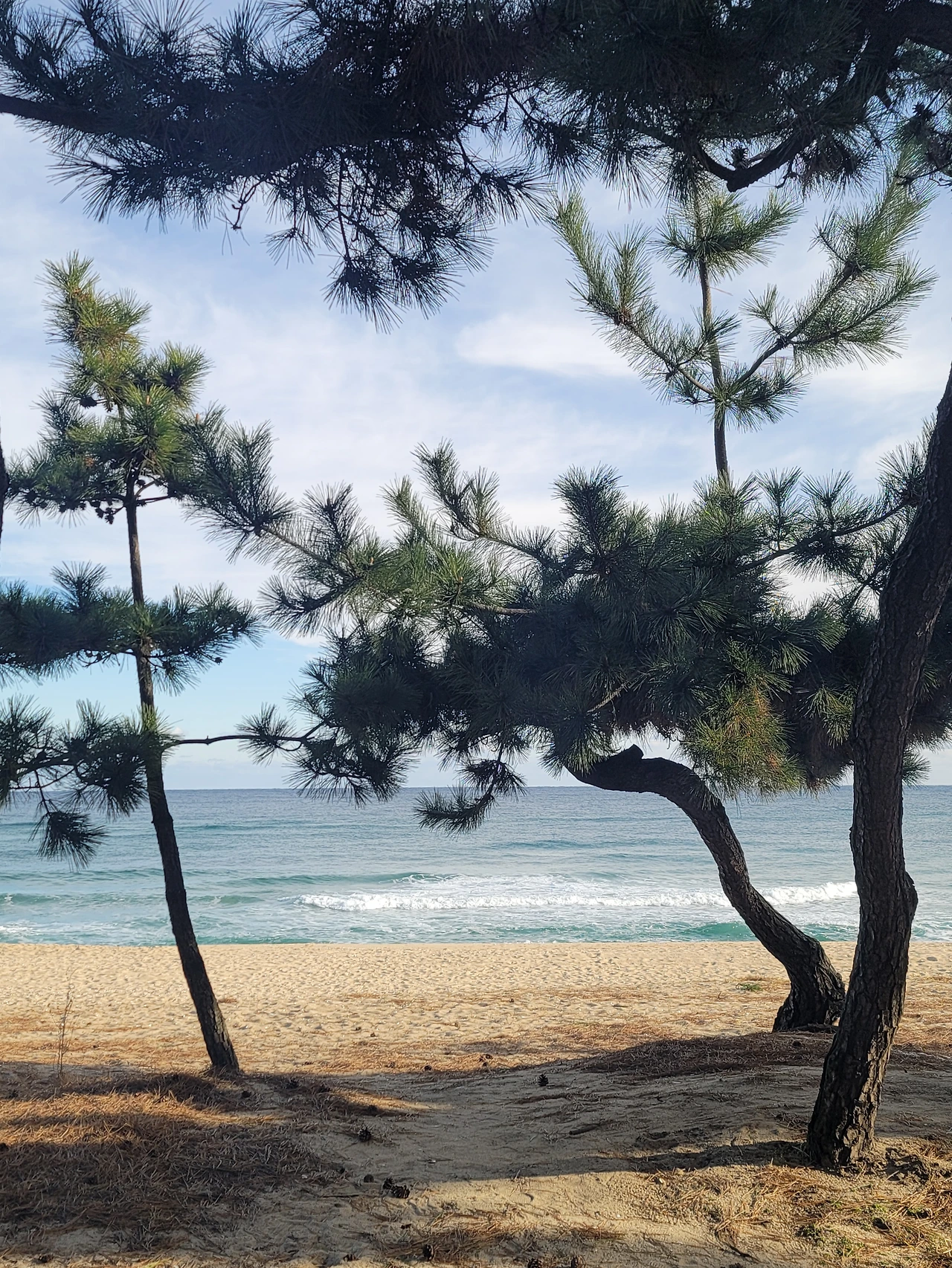 소나무 사이로 보이는 해변의 모래와 저 멀리서 넘실넘실 대는 파도를 향해 나는 두 팔 벌려 인사하고 있었다.
