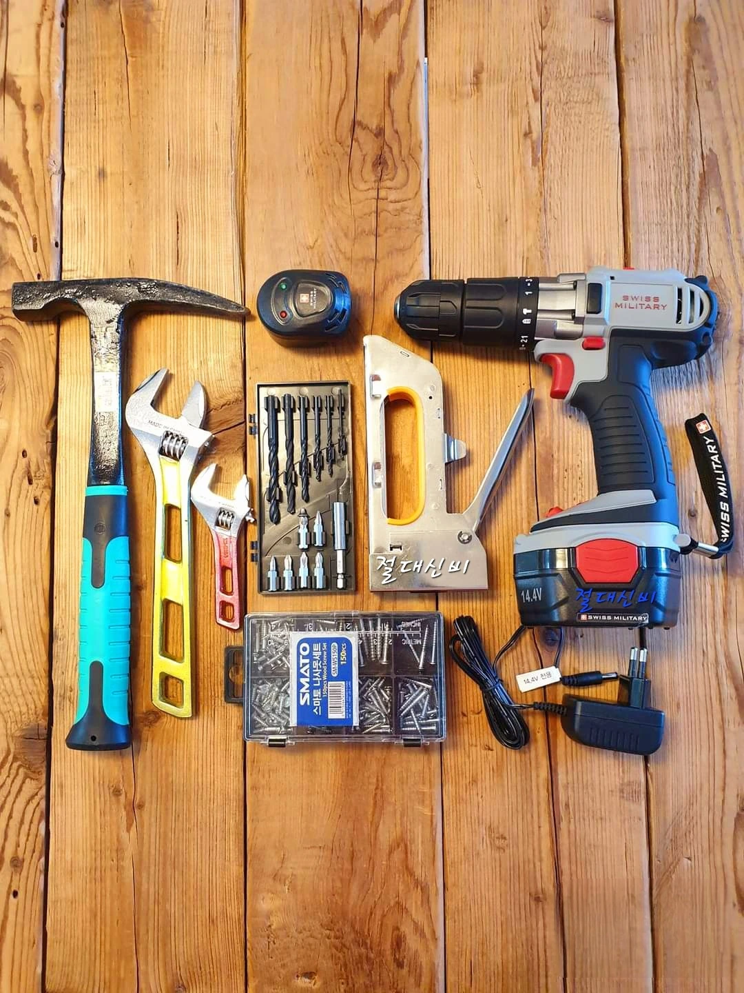 8. 공구 사랑 장비 사랑 ex) 사진의 고재 식탁은.. 쓰던 나무 책상에 100년 고재를 사 와서 붙여 만들었음.