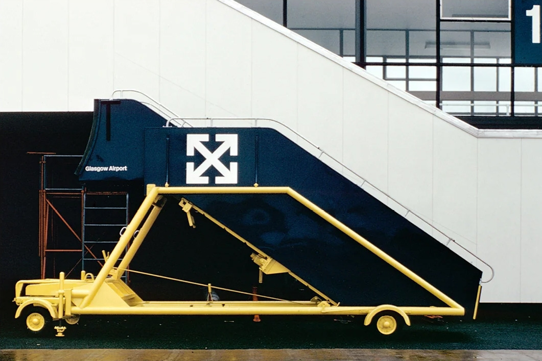 글래스고 공항의 화살표 심벌은 패션 브랜드에 관심 있는 사람들에게 익숙할 수 있습니다. 이는 고 故 버질 아블로가 설립한 오프화이트 Off-White 브랜드에서 사용한 화살표 모티브와 유사한 특징을 가지고 있기 때문입니다. 또한, 오프화이트는 대각선 줄무늬 패턴을 브랜드의 시그니처 디자인으로 활용하고 있으며, 이는 글래스고 공항의 차량 도색에 사용된 노란색과 검은색의 대각선 패턴과도 유사한 요소를 지니고 있습니다.