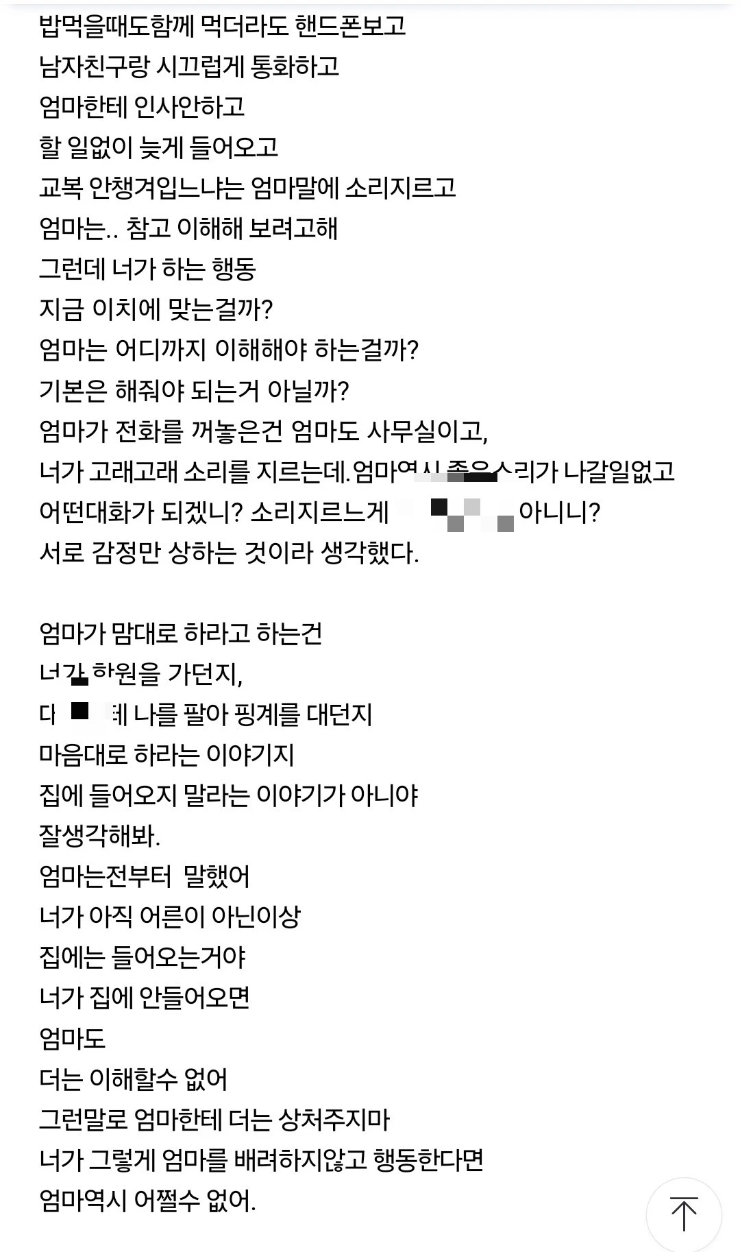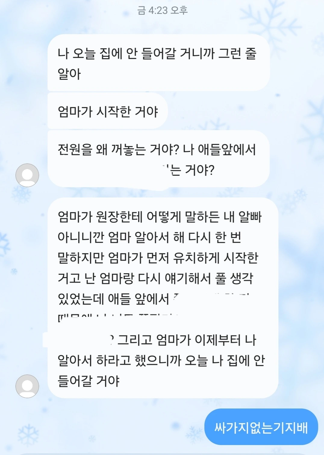 엄마가 전화를 일방적으로 꺼버려서 미안해라고