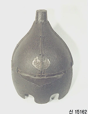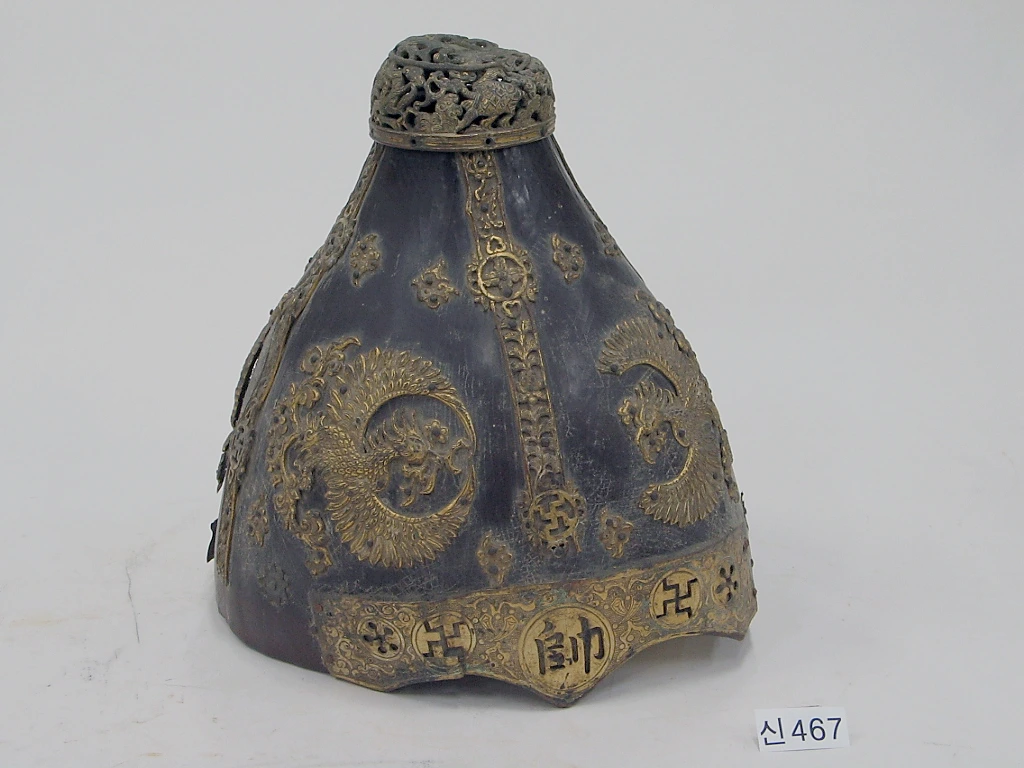그리고 이와 동일한 형태의 투구가 영국 빅토리아 앤 알버트 박물관에 소장돼 있는데, 높이 26.7cm의 이 투구는 1878년 일본에서 입수하여 유물번호는 118-1878 이며 해당 박물관 한국 컬렉션 중 상당히 초기에 입수된 것이라고 한다. 히젠 성의 성주(prince of Hizen)가 1594년 포획했다는 기록이 있다.