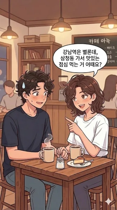 예전에 실제로 겪었던 소개팅 에피소드 — 지금 생각해도 피식 웃음이 나는 그 날의 기억을 만화로 재현해봤다. AI와 함께라면 내 흑역사도 콘텐츠가 된다!