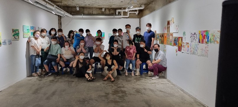 이날은 발달장애인 모드니직업적응훈련센터 회원들 미술전시 오픈하는 날이었고 특별히 남기를 오픈식에 초대했던 것이다. 그의 존재 만으로도 그림 그리는 동기를 얻고 힘이 되길 바랐다.